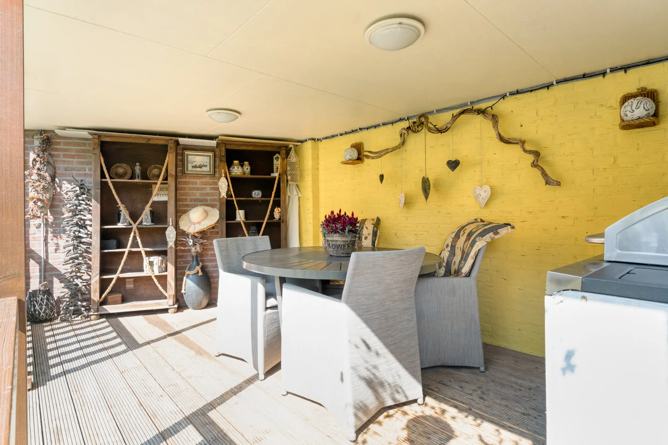 Buiten vind je een goed onderhouden tuin met zowel een achtertuin als een zijtuin. De achtertuin is voorzien van een overkapping, solardouche en een tuinhuis v.v. afzuigkap. De zijtuin is voorzien van een looppad naar de poort en een containeropstelplaats.