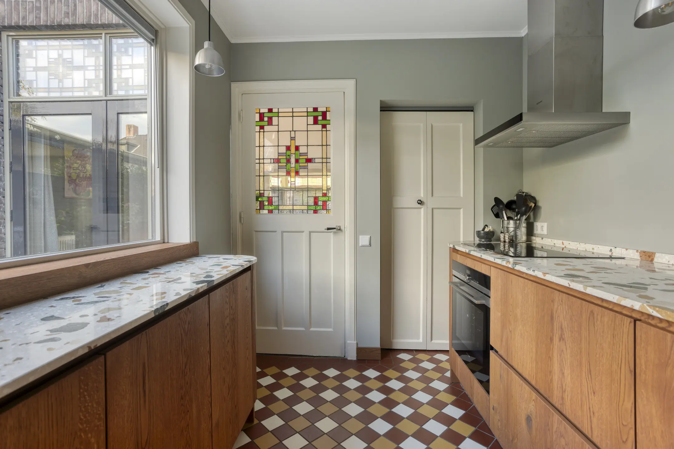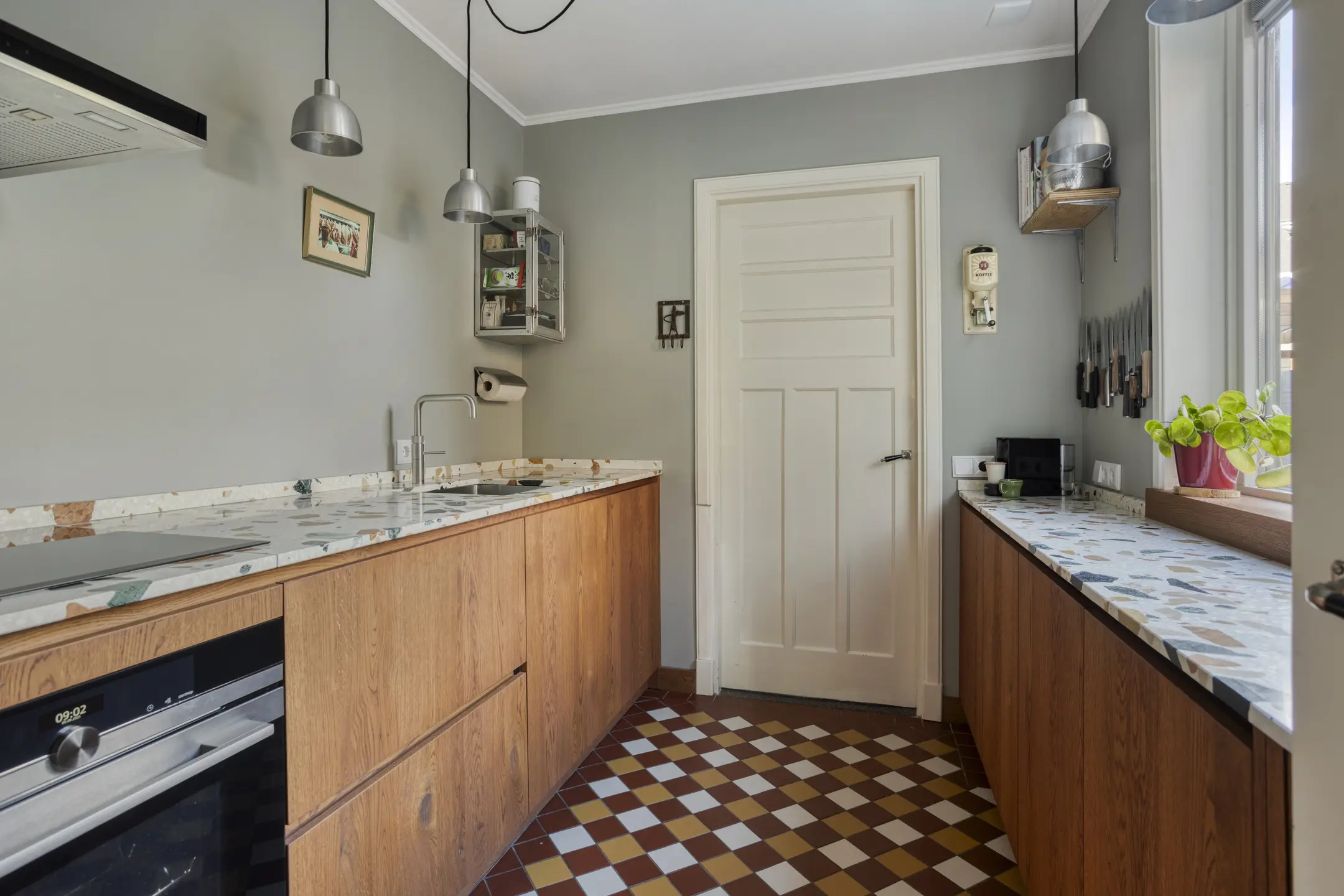 • Authentieke elementen als terrazzo vloer, paneeldeuren en gietijzeren voordeur – karakter tot in detail