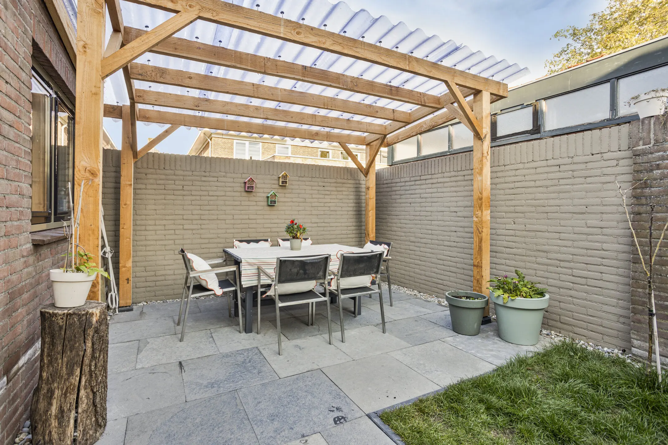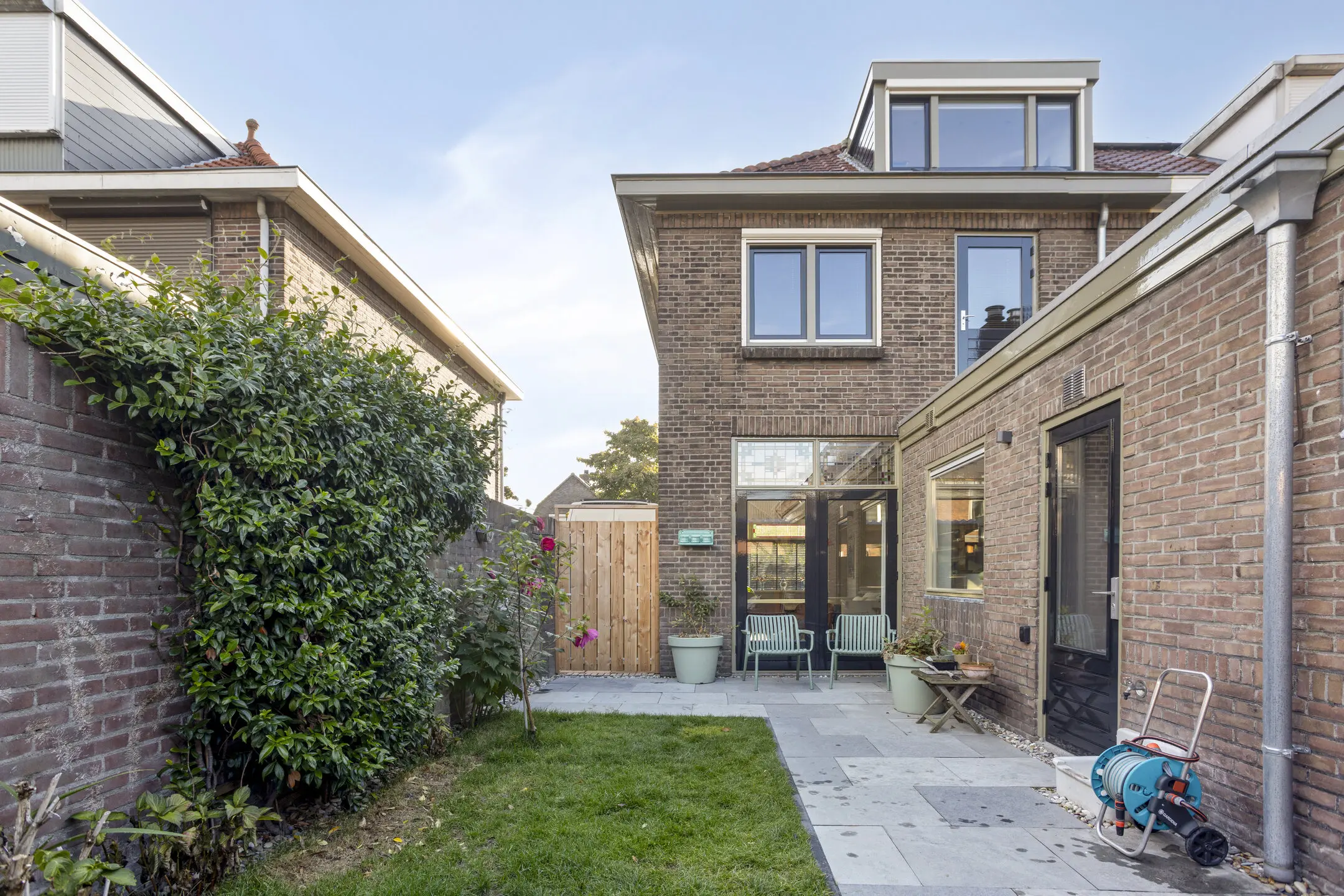 • Opfriste tuin met bestrating, poort en overkapping – gewoon lekker buiten zitten