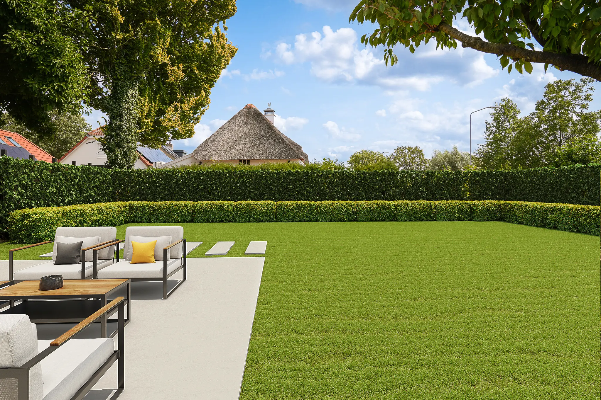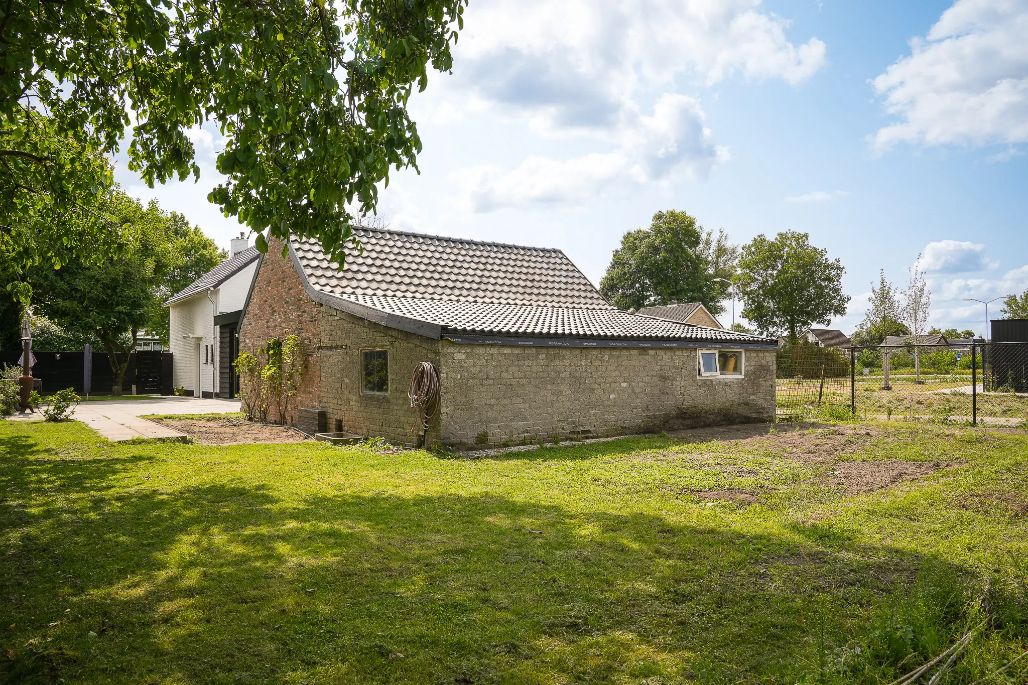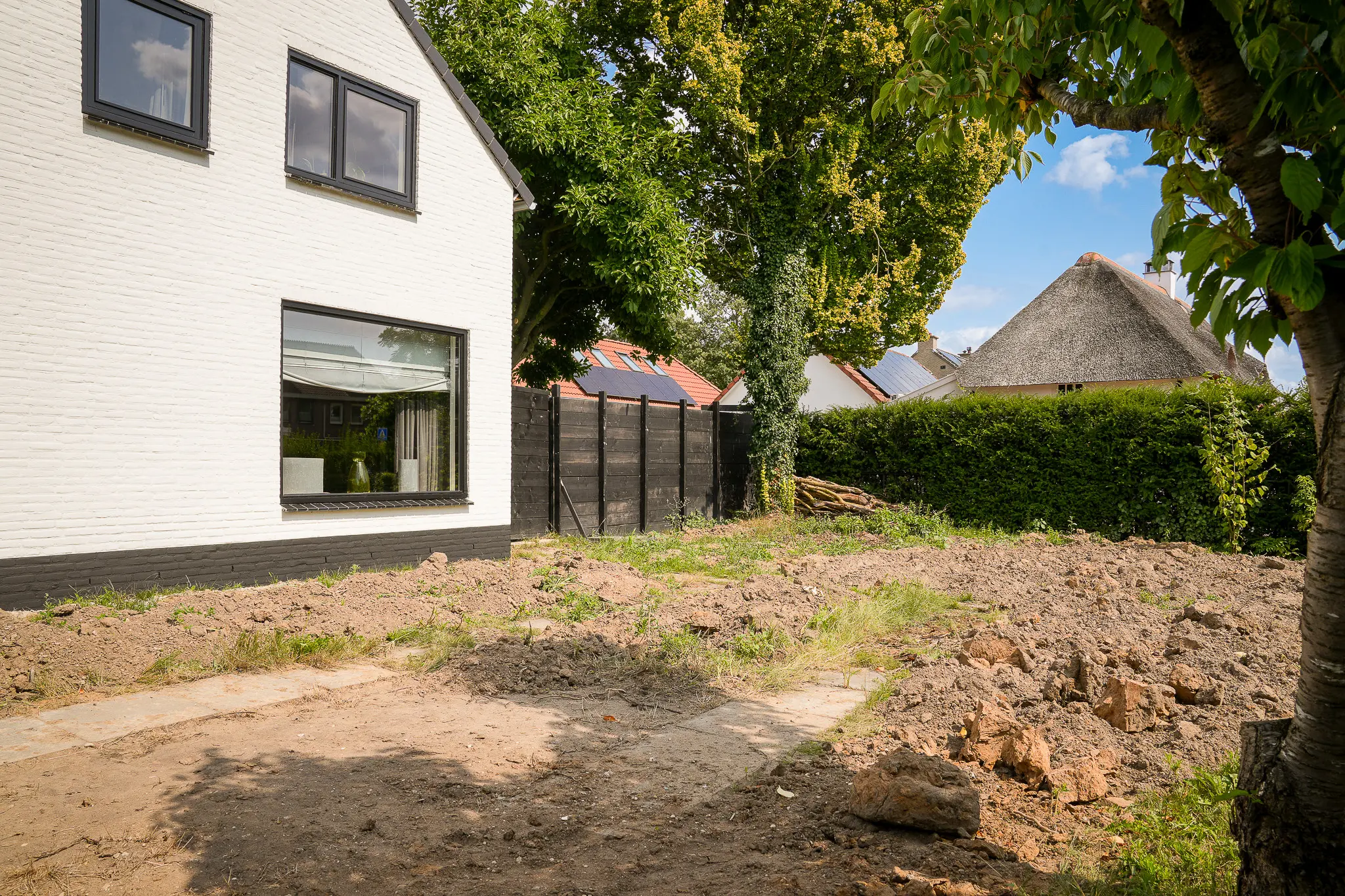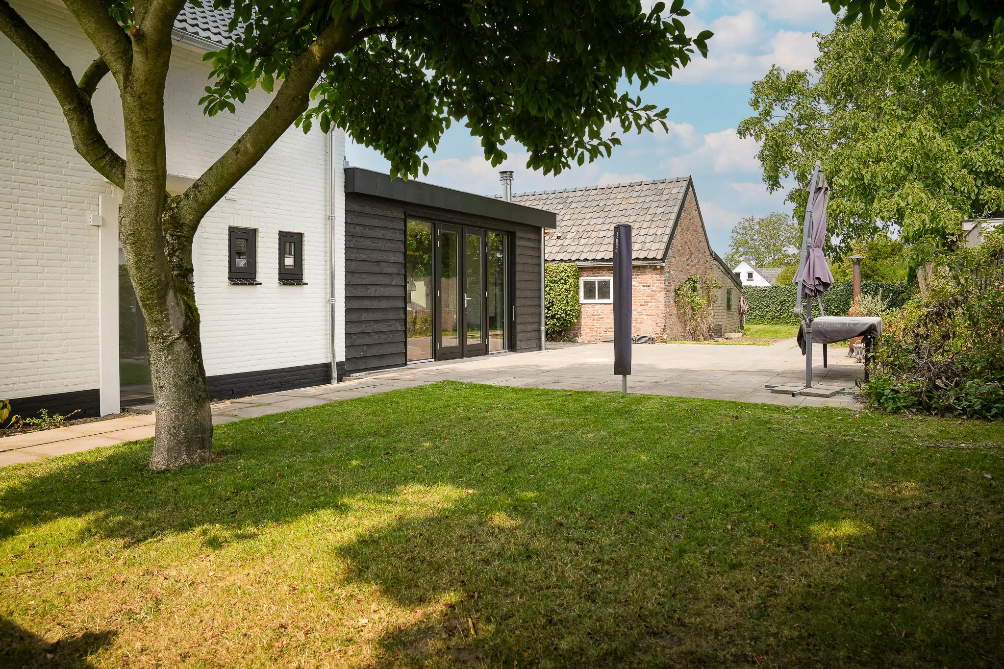 Buiten gaat de ruimtebeleving verder. Het perceel van bijna 1.000 m² is omzoomd door volwassen beplanting en biedt veel privacy. Meerdere terrassen nodigen uit tot buiten dineren, ontspannen in de zon of een boek lezen in de schaduw. Achterin staat de recent vernieuwde schuur, perfect voor opslag of een hobbyruimte. De brede oprit langs het huis biedt plek voor meerdere auto’s op eigen terrein.