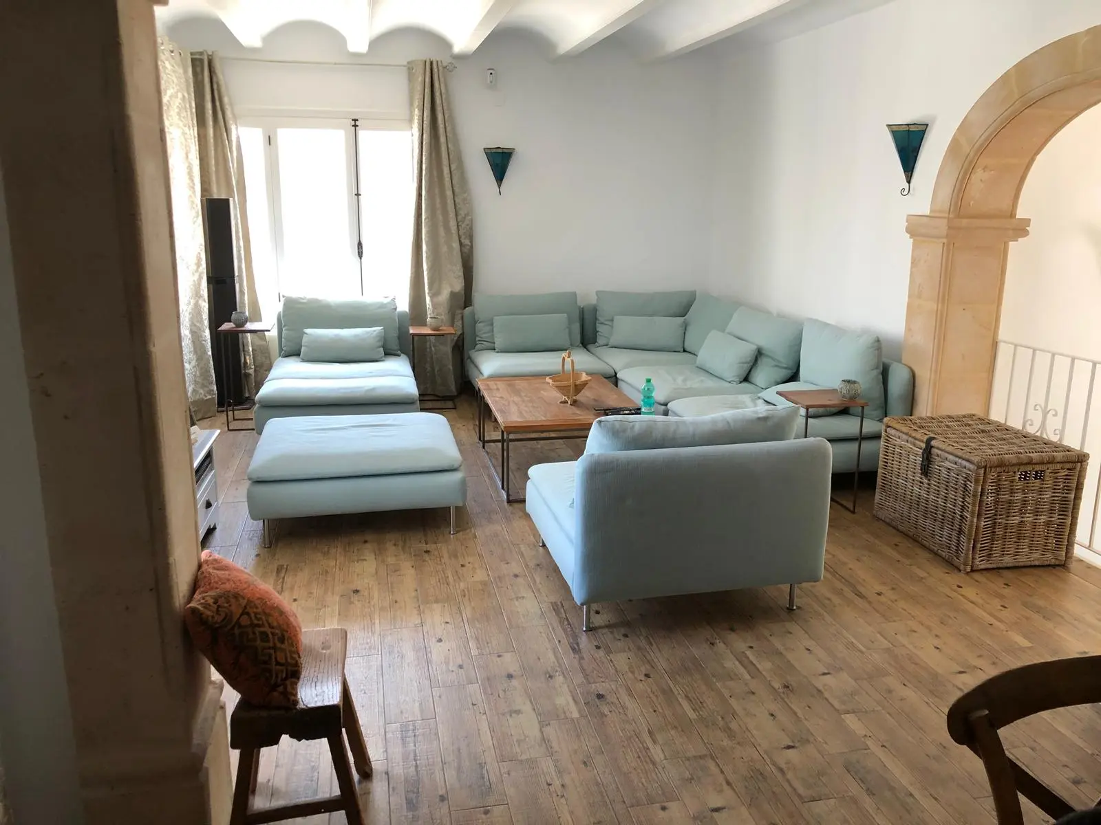 Via een aparte ingang bij de parkeerplaats betreedt u de woning. In de hal bevindt zich een gastentoilet en een elegante split-level trap die leidt naar zowel de bovenste woonverdieping als de lagergelegen slaapvertrekken. Boven vindt u de lichte, ruime woonkamer met een volledig uitgeruste open keuken. Deze gezellige leefruimte komt uit op een deels overdekt terras, met uitzicht op het weelderige zwembad, de groene omgeving en zelfs een glimp van de Middellandse Zee. Via een buitentrap bereikt u ook direct het zwembadterras.