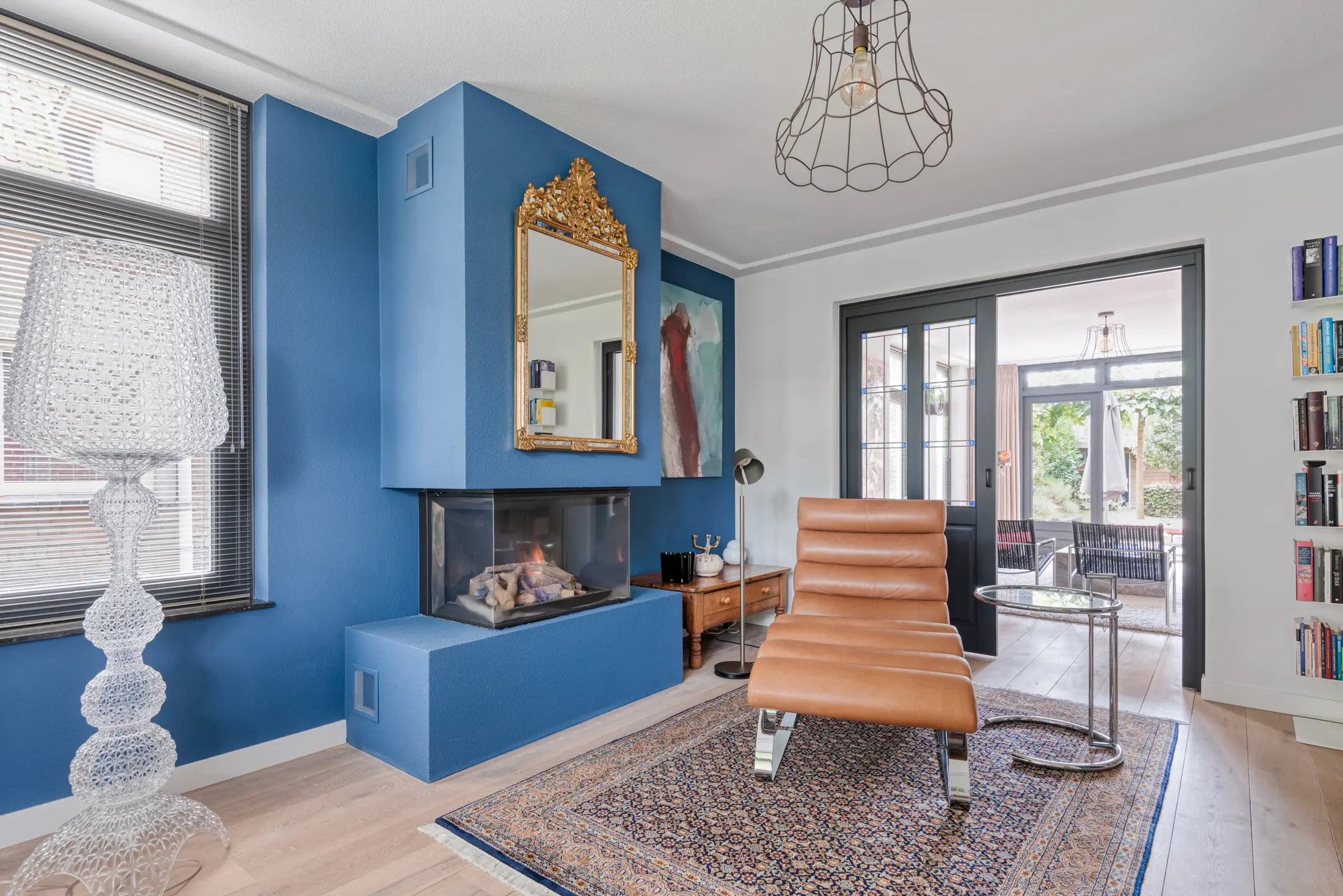 De voorzijde ademt klasse. Een stijlvolle entree leidt je naar de salon: hoge plafonds, een sfeervolle haard, prachtige schuifdeuren. Hier voel je direct de grandeur van een huis waar elk detail klopt. De schuifdeuren openen naar de tuingerichte living, een zee van licht met royale raampartijen en toegang tot het terras. Dit is wonen zoals je het voor je ziet in woonmagazines – en hier is het werkelijkheid.