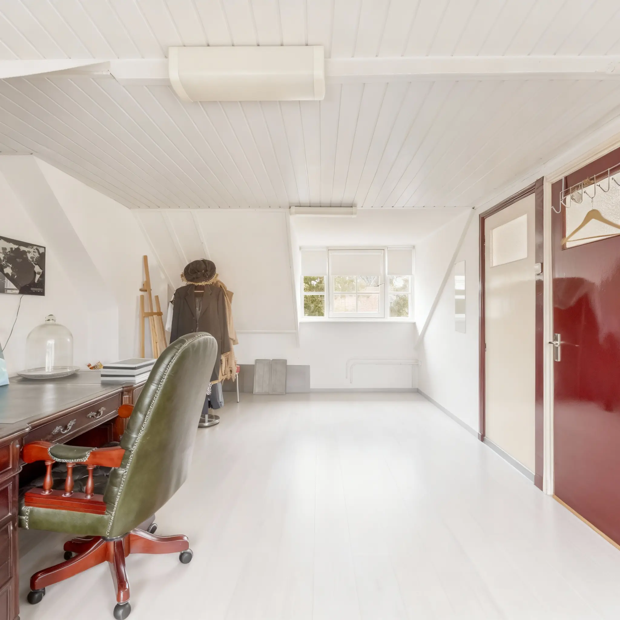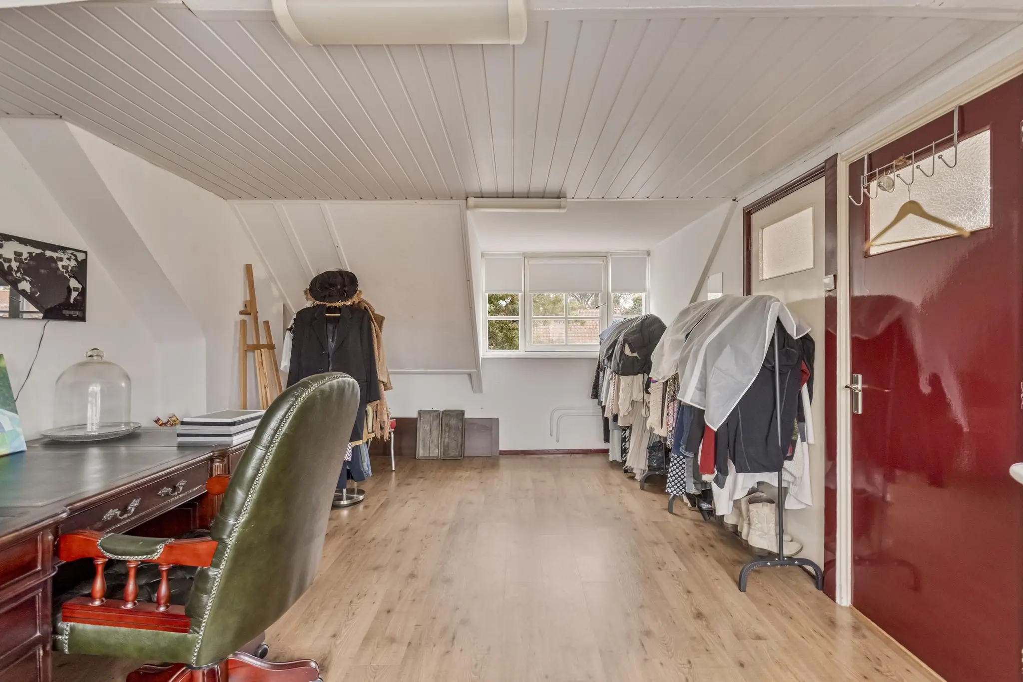 Op de eerste verdieping bevinden zich drie slaapkamers, waarvan de hoofdslaapkamer voorzien is van airconditioning. De badkamer beschikt over een ligbad en er is een apart tweede toilet aanwezig. De ruime zolderverdieping heeft dakkapellen aan de voor- en achterzijde, waardoor er veel licht binnenvalt. Hier is nu een vierde slaapkamer aanwezig, met de mogelijkheid om eenvoudig een vijfde te creëren.