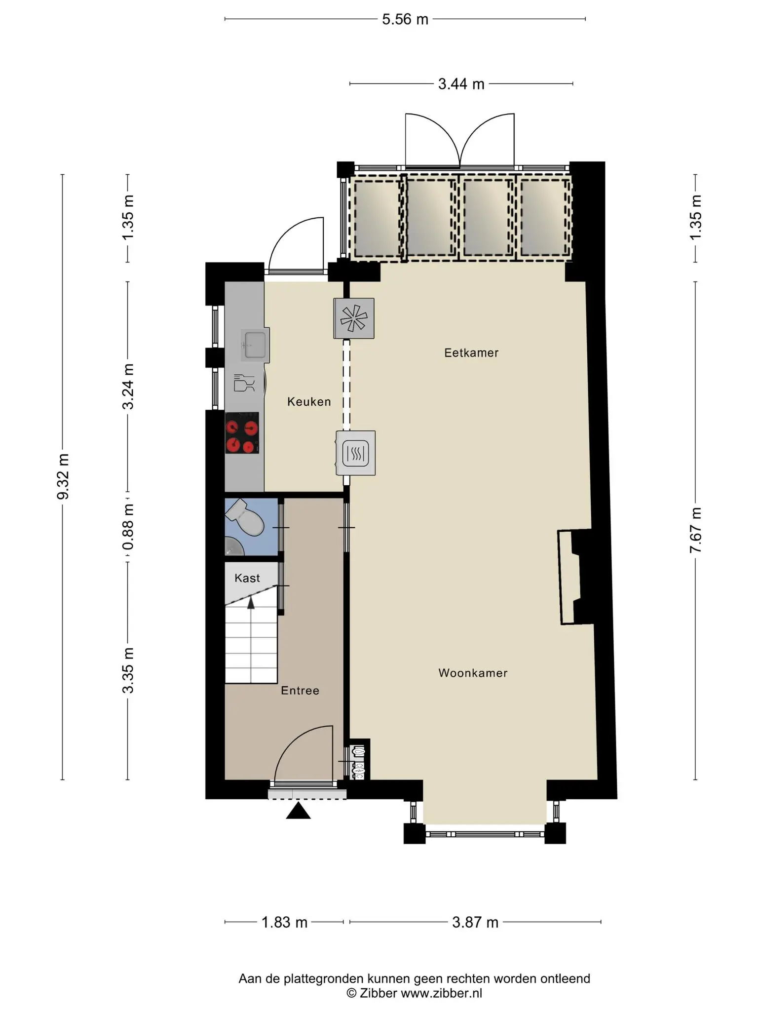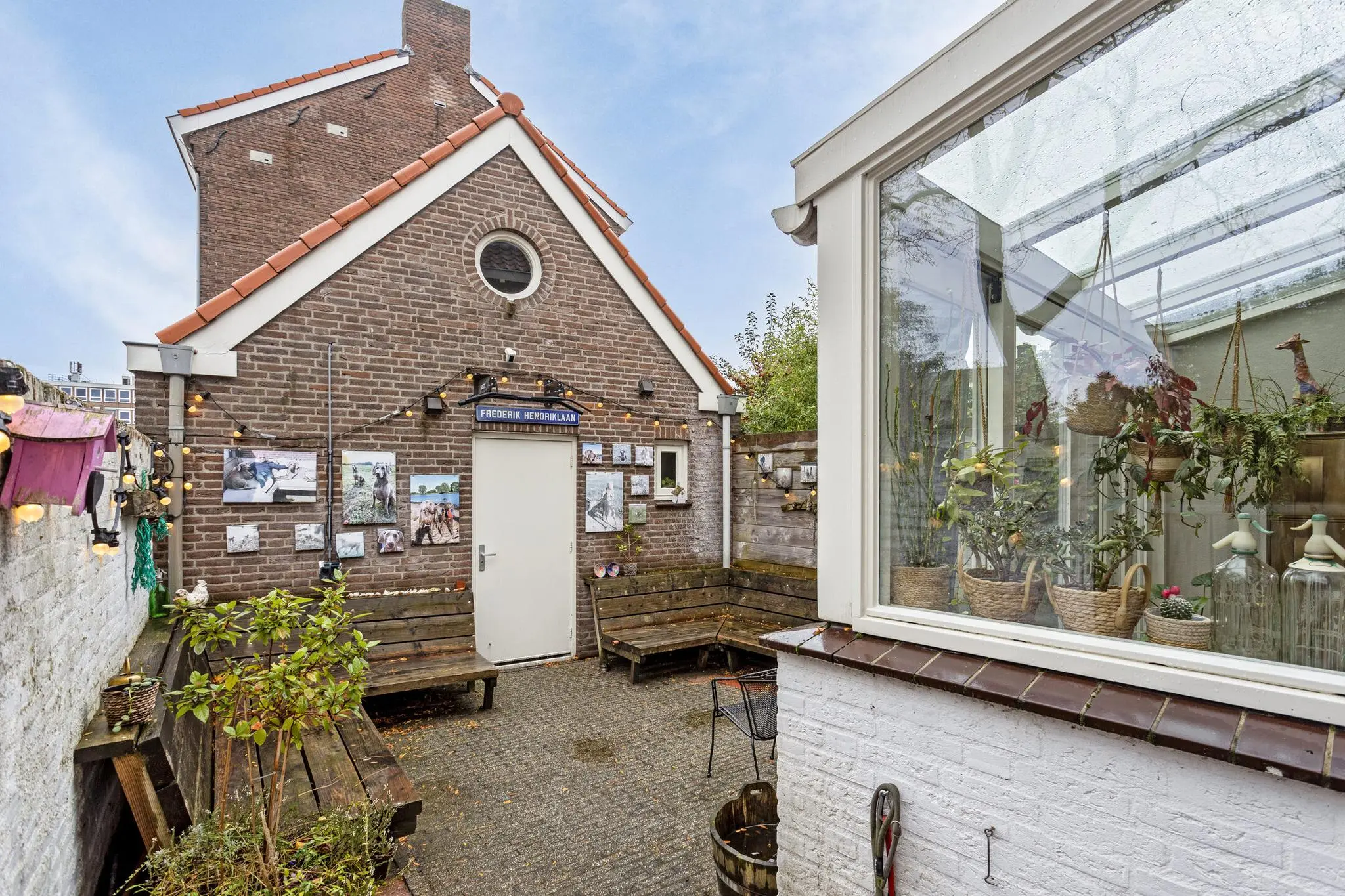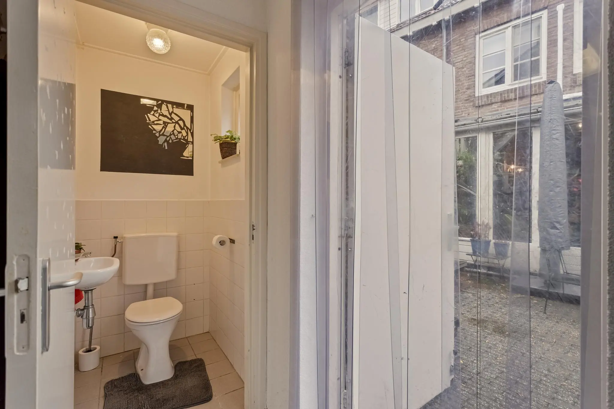 The outbuilding at Pieter de Hooghstraat 1 has its own entrance, central heating, and connections for kitchen and bathroom facilities. This makes it easy to convert into a separate living space, home office, or studio.