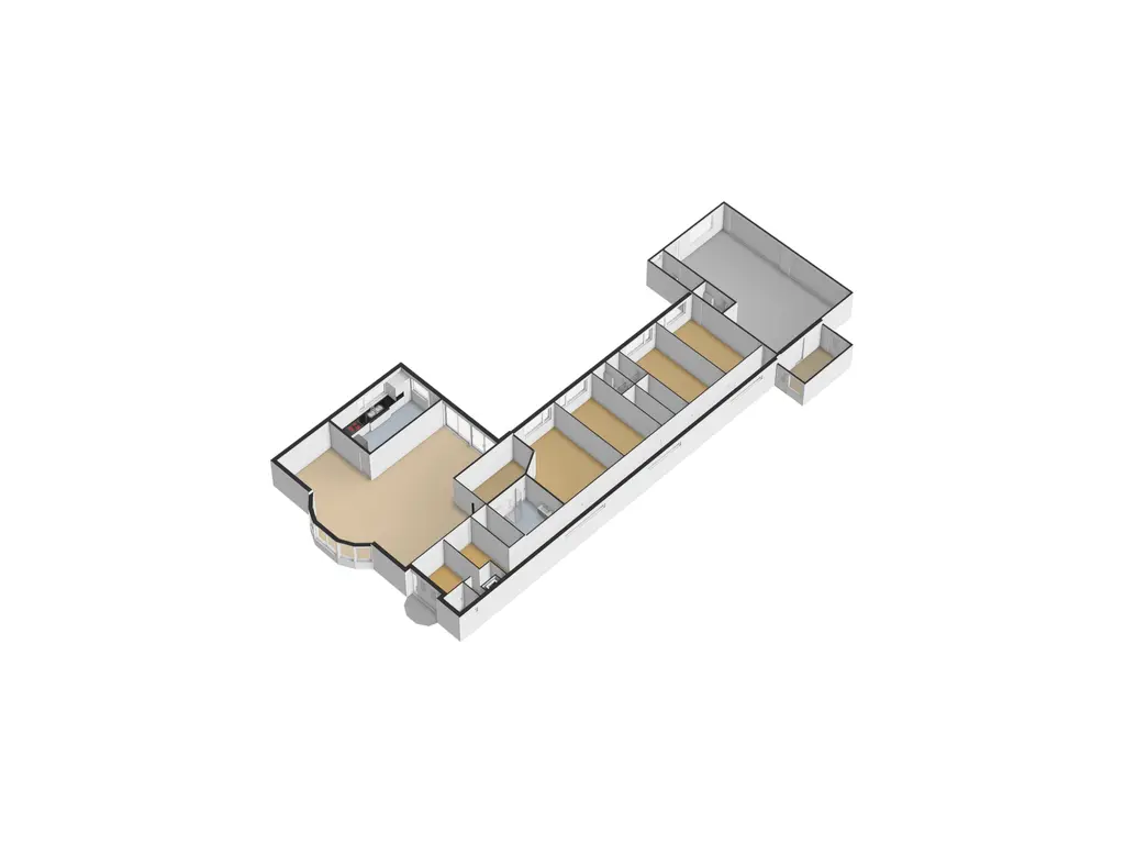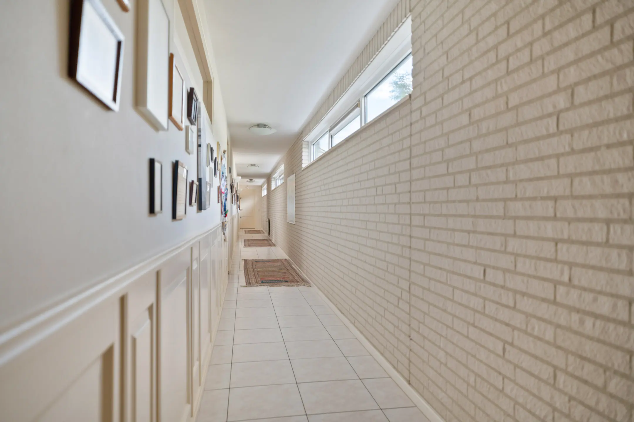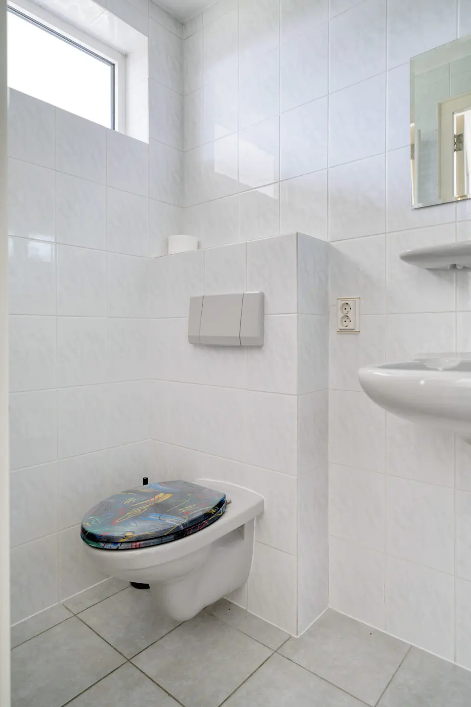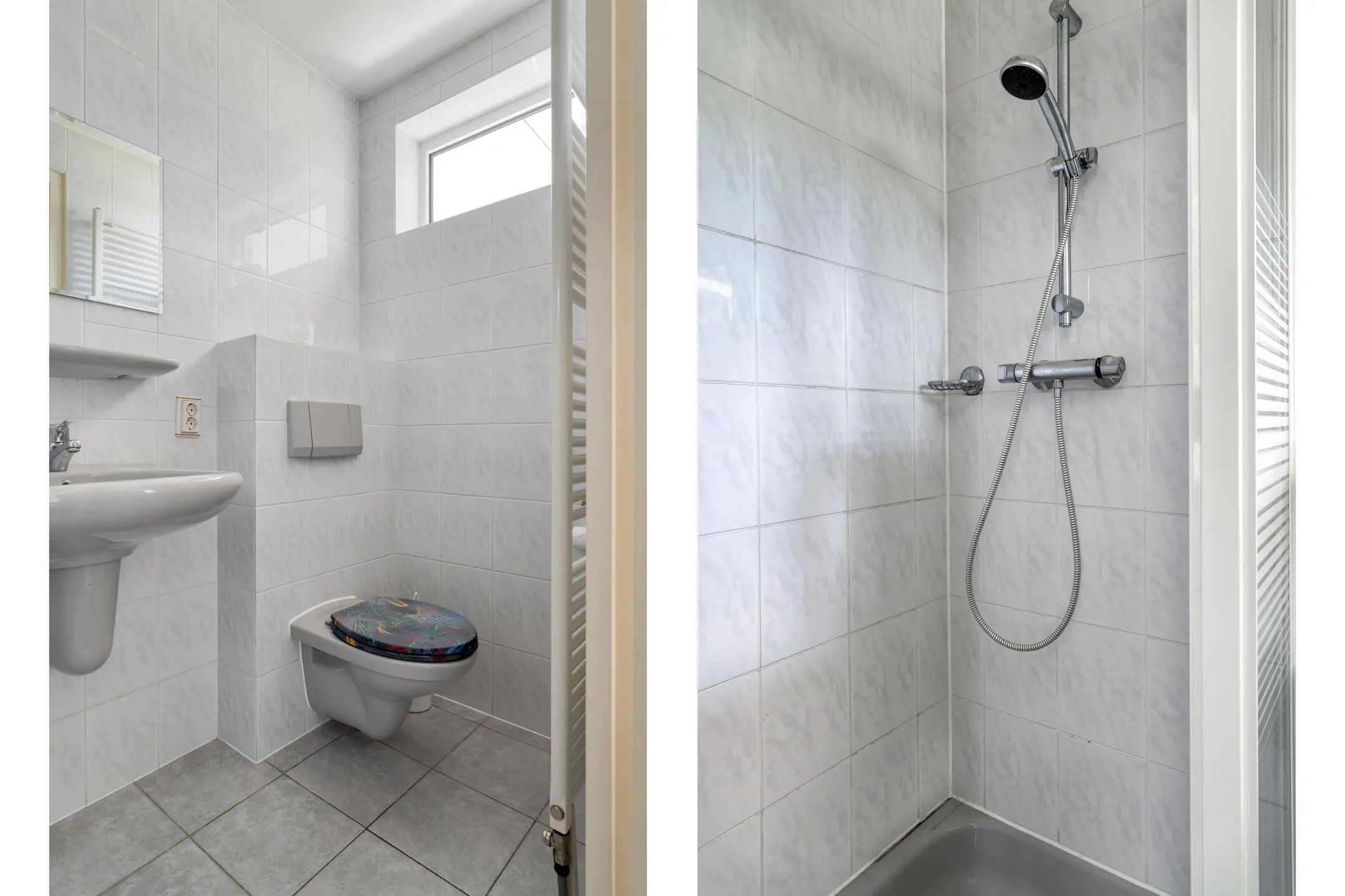 Bij binnenkomst wordt u verwelkomd in een ruime hal met toegang tot het toilet en de garderobe, die tevens de meterkast herbergt. Vanuit deze hal heeft u toegang tot een tweede hal, die op zijn beurt leidt naar de woonkamer, een ruime bergruimte en een gang naar de slaapvertrekken. Dankzij de speelse en open indeling en de vele grote ramen is de woning bijzonder licht. Alle vertrekken bevinden zich op de begane grond, wat bijdraagt aan de toegankelijkheid en het comfort van deze woning.