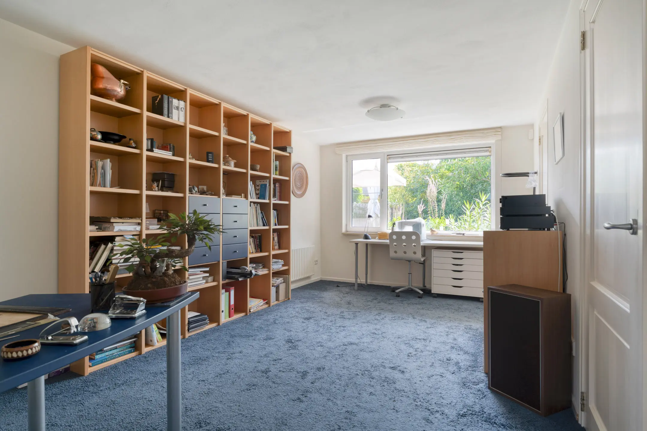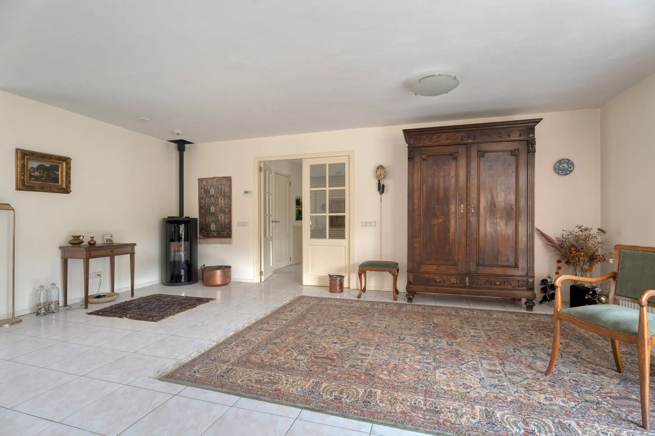 De woonkamer is werkelijk een blikvanger. Dankzij de erker aan de voorzijde van de woning is er nog meer lichtinval, wat zorgt voor een warme en lichte sfeer. De woonkamer is royaal en biedt verschillende mogelijkheden voor het creëren van diverse zithoeken. Door de schuifpui heeft u een directe verbinding met de tuin, wat het buitenleven naadloos met het interieur verbindt. In de woonkamer vindt u niet alleen een ingebouwde haard, maar ook een palletkachel voor extra sfeer en warmte. Het uitzicht op het groen rondom de woning maakt deze ruimte bijzonder aangenaam.