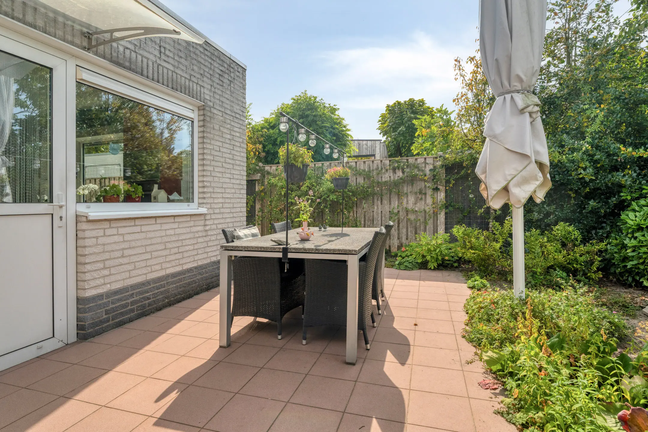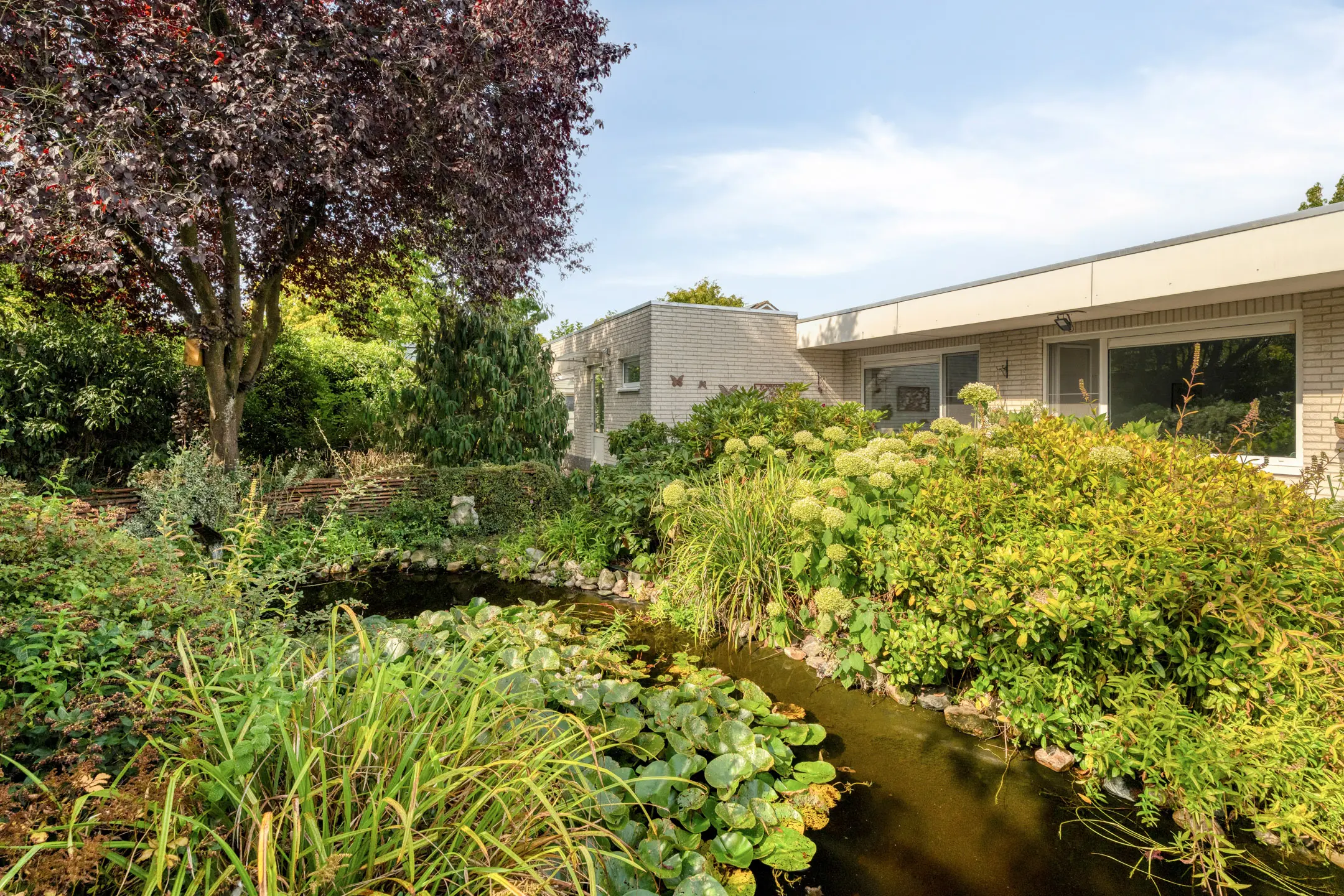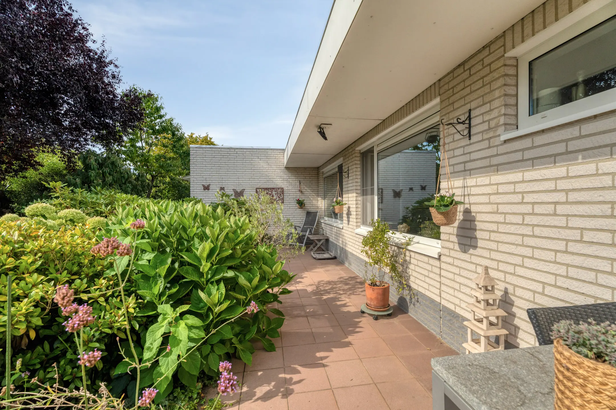 De buitenruimte is een ware oase van rust. De achtertuin is fraai aangelegd en biedt volop privacy. Het grote terras, voorzien van twee ingebouwde parasols van 4x4 meter, biedt aangename schaduw en is ideaal voor het buitenleven. De parasols zijn stevig in de grond verankerd en beschermen u tegen de zon. In het midden van de tuin vindt u een sierlijke vijver die zorgt voor een luxe uitstraling en een ontspannende sfeer. Dankzij de gunstige ligging kunt u hier vrijwel de hele dag genieten van de zon.