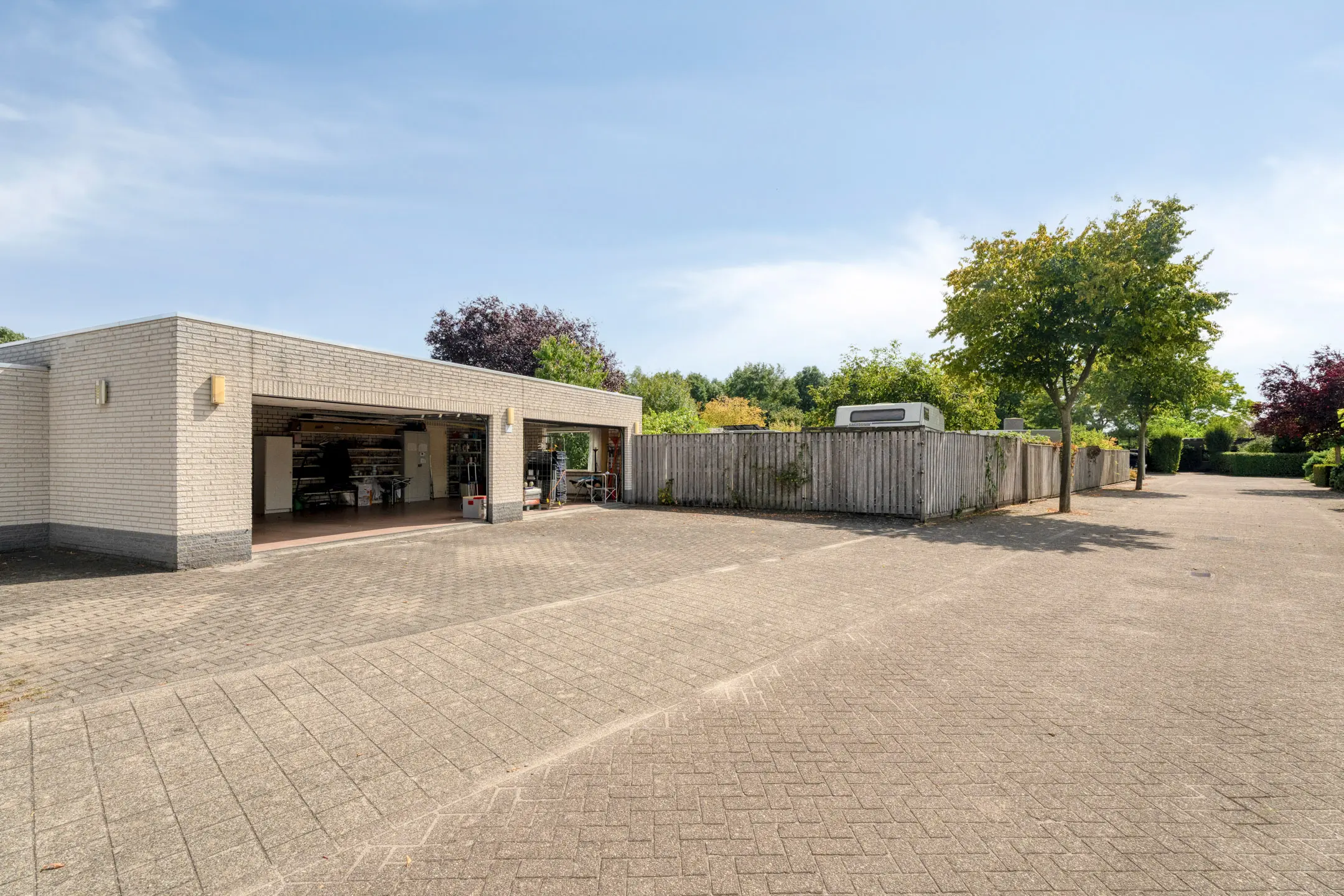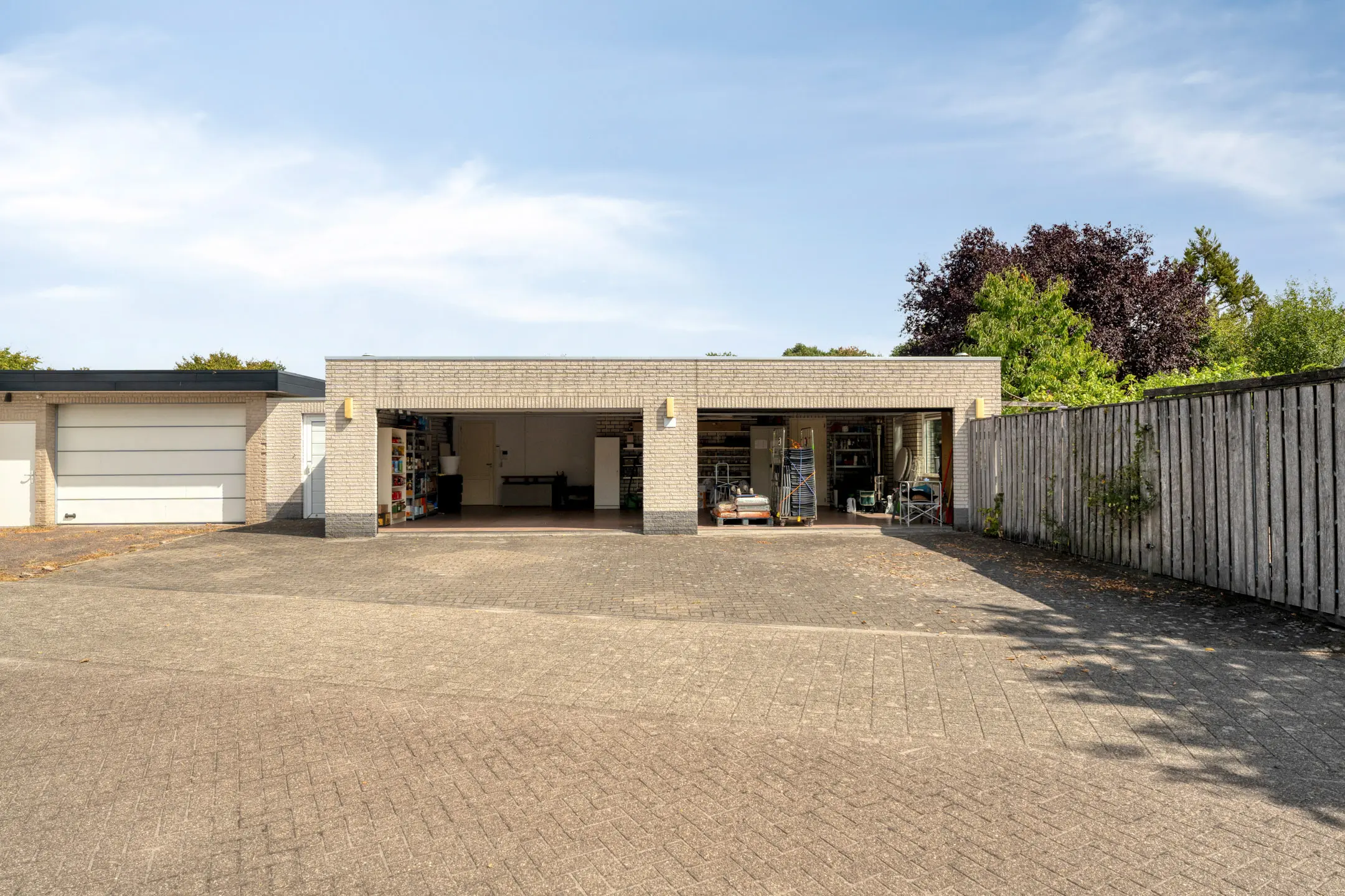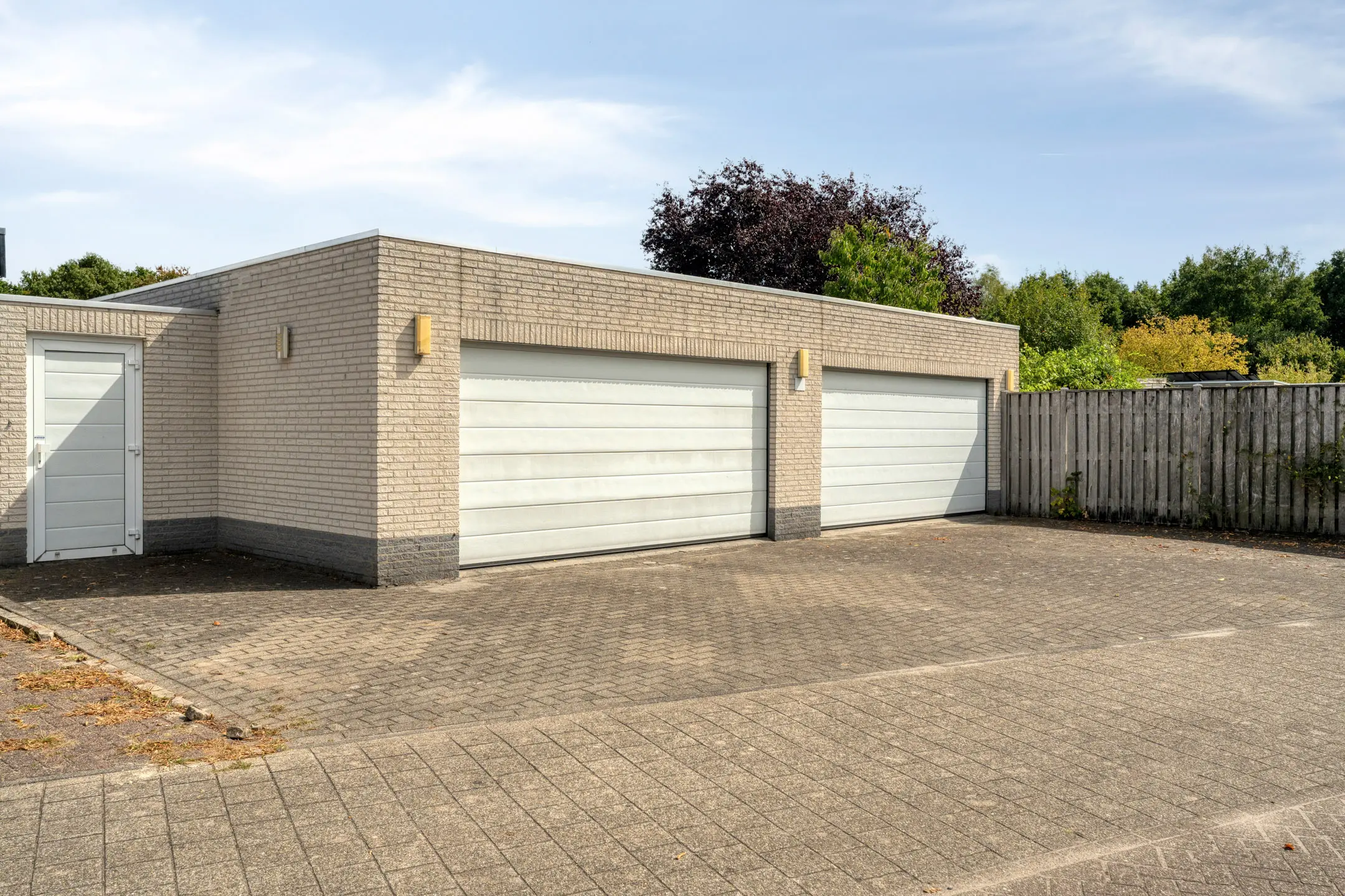 De inpandige garage is bijzonder royaal (83 m²) en biedt ruimte voor vier auto's. Daarnaast biedt de garage voldoende ruimte voor hobby- of werkactiviteiten. De garage is uitgerust met twee elektrische deuren die geopend kunnen worden met een afstandsbediening. De oprit voor de garage biedt ruimte voor extra auto's, wat ideaal is voor bezoek.
