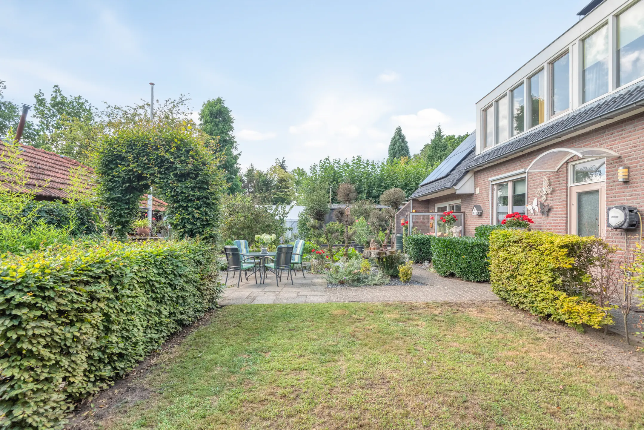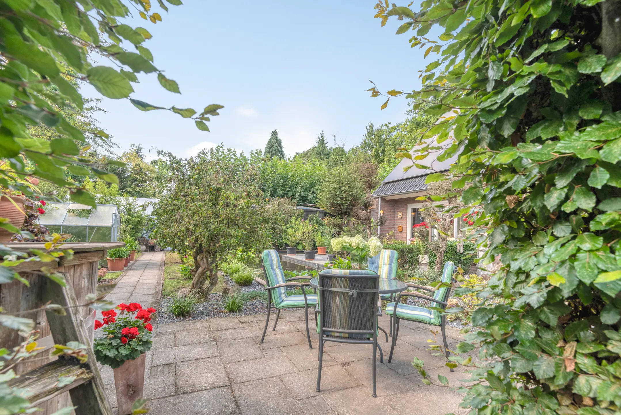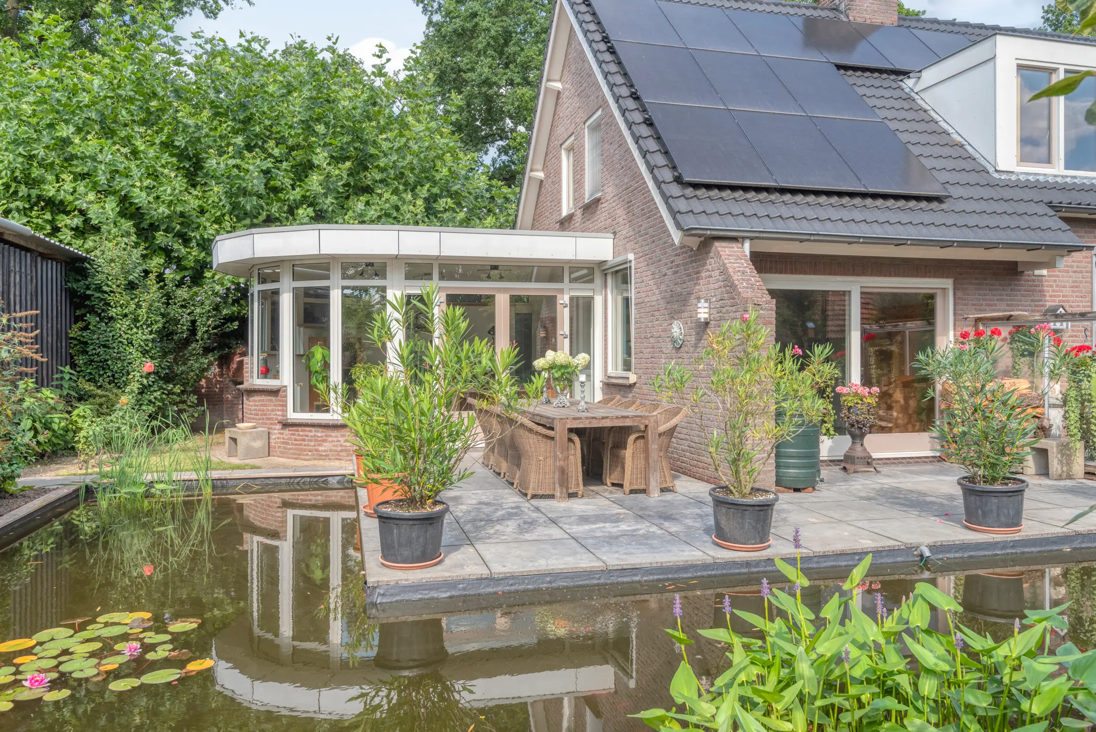 Het perceel van 961 m² is met veel zorg en aandacht aangelegd. U vindt hier een ruim terras, een sfeervolle vijver en volop groen, waardoor u geniet van rust en privacy.