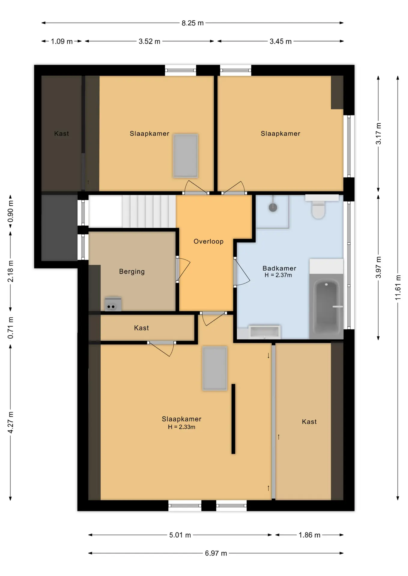 Op de verdieping vindt u drie volwaardige slaapkamers, allemaal met veel daglicht en een prettig uitzicht op de tuin of omgeving.