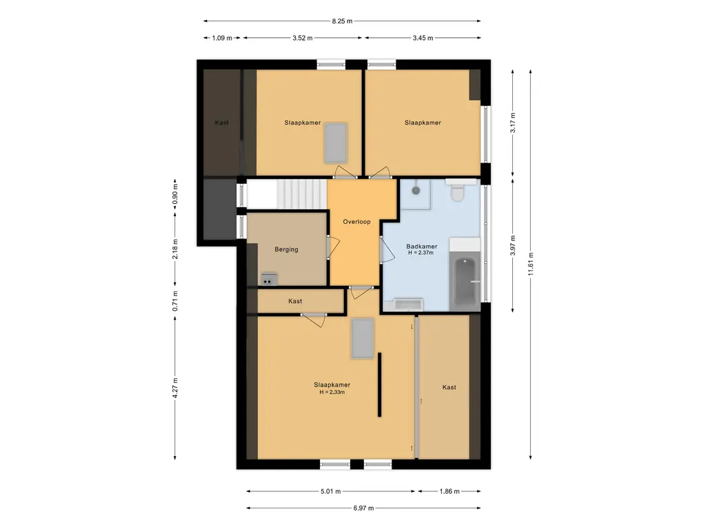 Boven de eerste verdieping bevindt zich een praktische vliering van circa 6 m², ideaal als extra bergruimte.