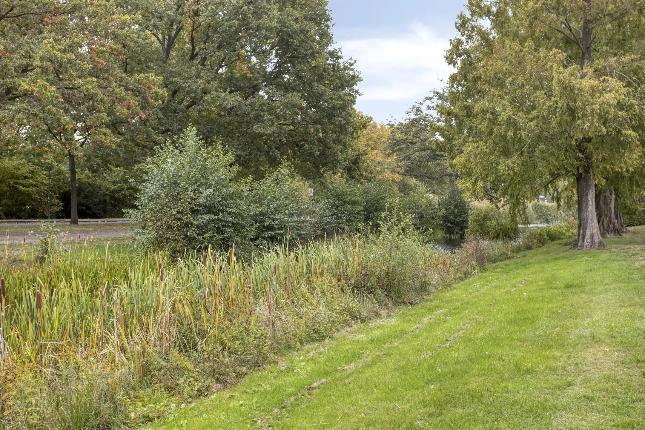 De zonnige tuin ligt op het zuiden en beschikt over een overkapping, waardoor je ook op minder zonnige dagen van buiten kunt genieten. Het vrije uitzicht over het water maakt de tuin compleet.