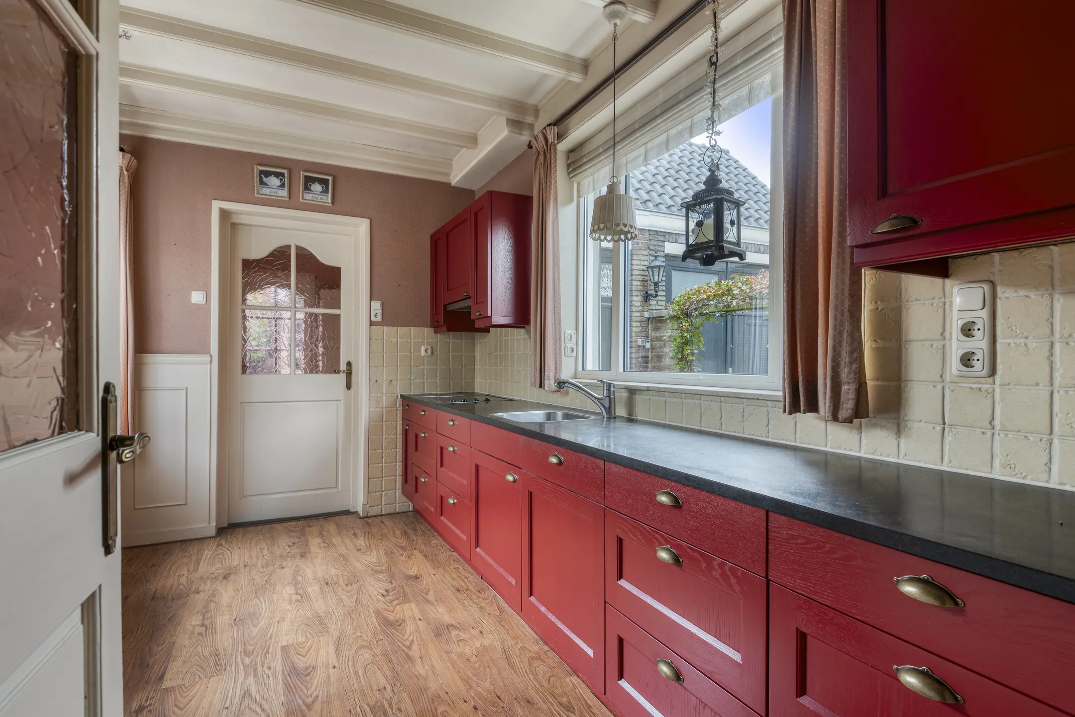 De keuken is aan de achterzijde gelegen en beschikt over diverse inbouwapparatuur. De keuken is onder andere voorzien van oven, vaatwasser en koelkast.