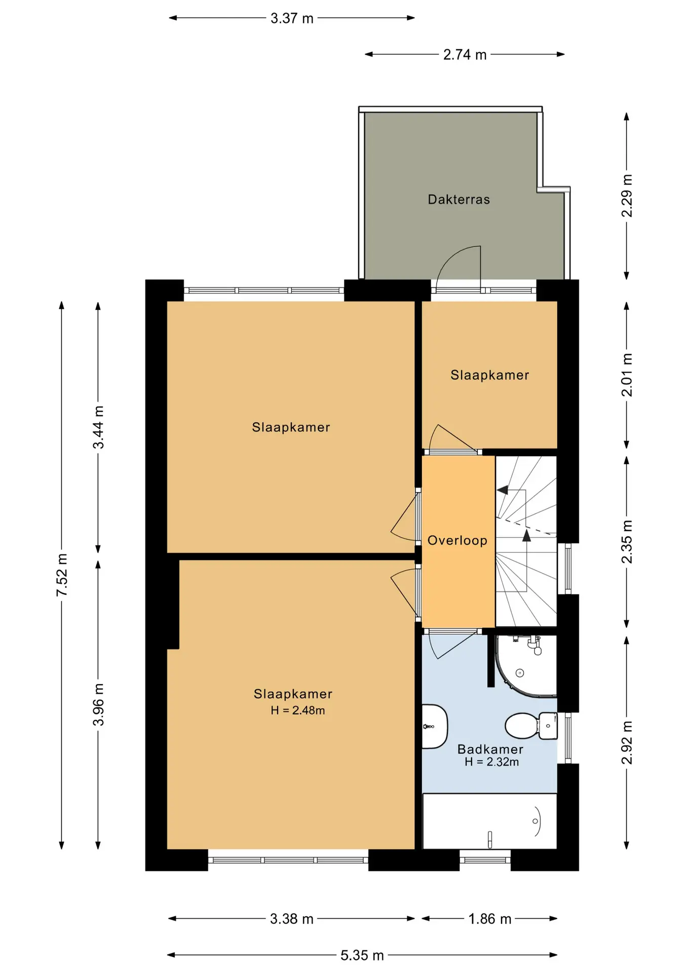 Hier bevinden zich twee ruime slaapkamers en een derde kleinere kamer, ideaal als studeer- of babykamer.