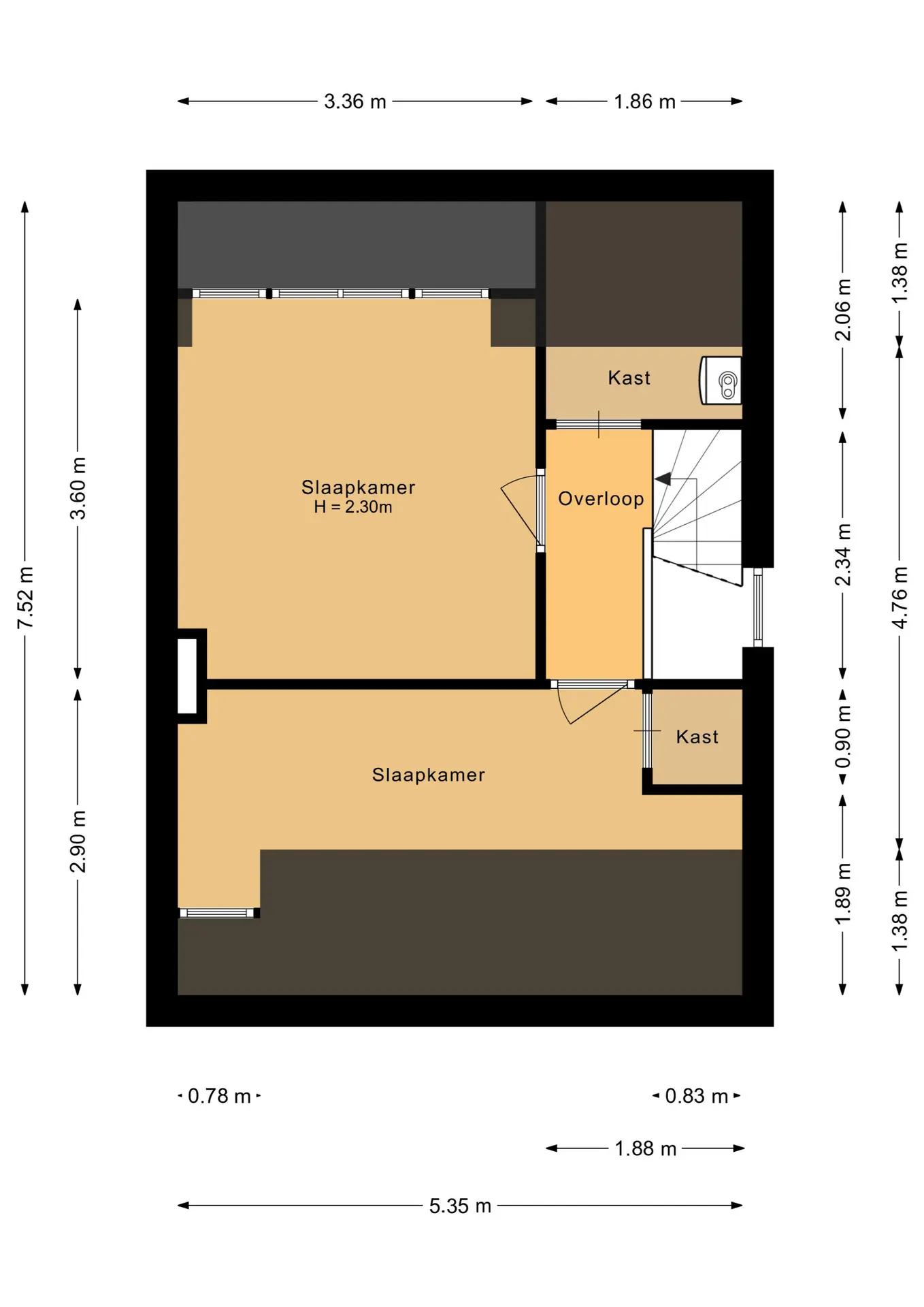 De royale zolderverdieping biedt ruimte voor twee extra slaapkamers. Op de overloop bevindt zich de stookruimte met cv-installatie.