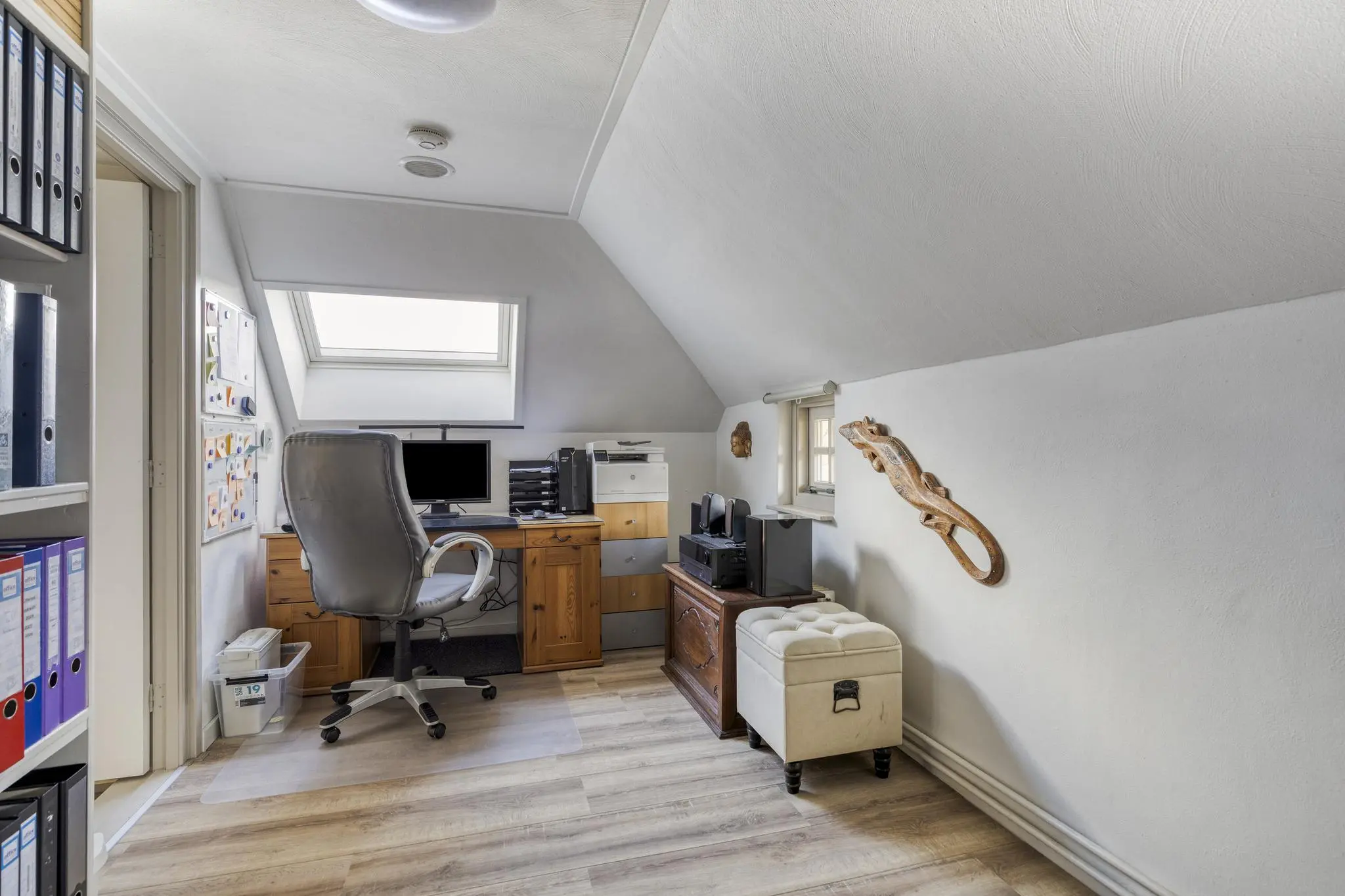 • Bijgebouw/garage van 27m² – met verwarming, water én grote bergzolder: multifunctioneel inzetbaar