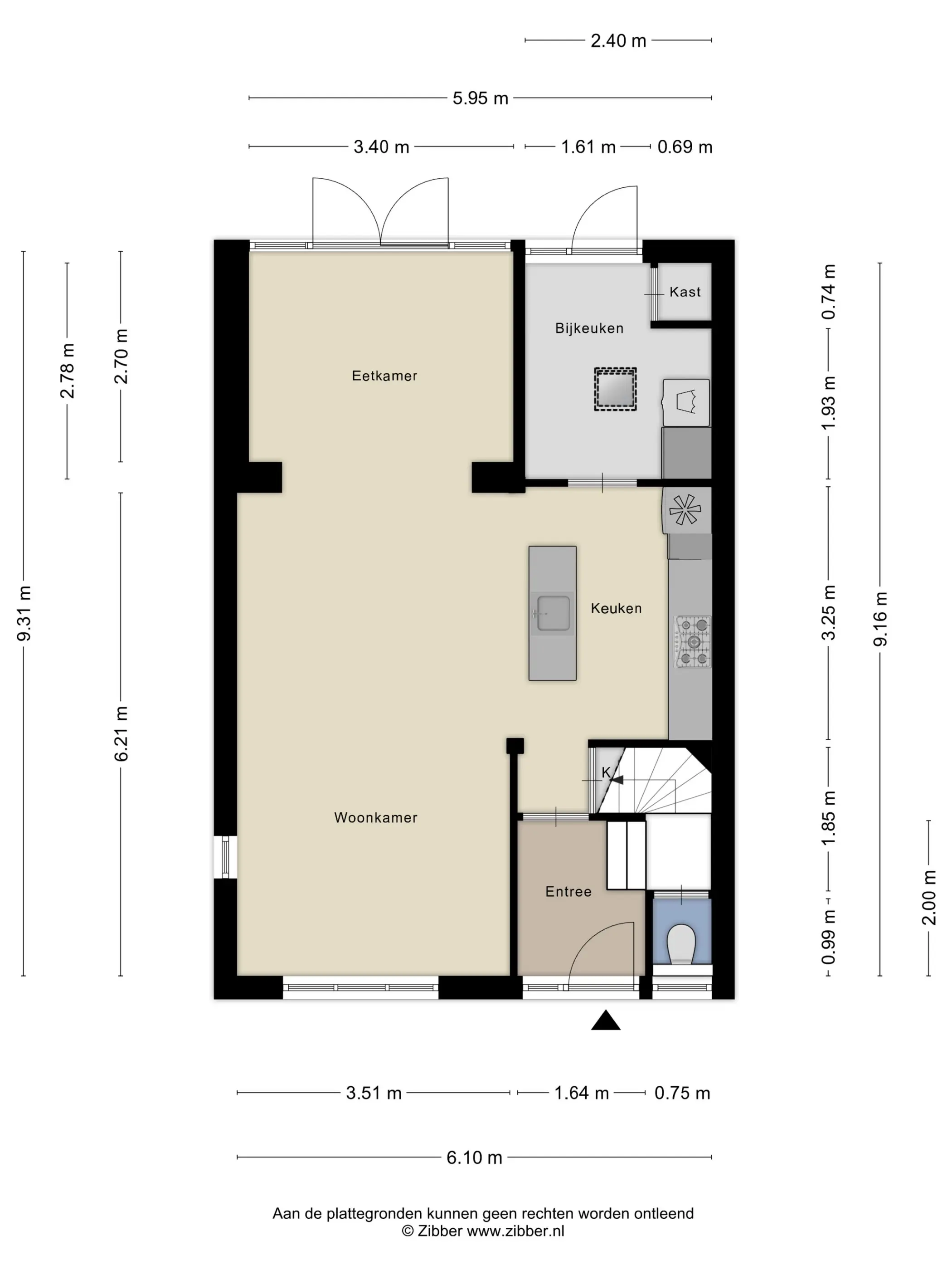 Via de voordeur kom je in de entree met hal, meterkast en separaat toilet. Vanuit de hal betreed je de doorzonwoonkamer met een vinylpanelen. De woonkamer heeft veel lichtinval en biedt ruimte voor een gezellige zithoek en eettafel. Daarna kom je in de moderne open keuken met spoeleiland. De keuken heeft mooie donkere fronten, inbouwapparatuur en losse koel-vries combinatie. Via een deur in de keuken betreed je de bijkeuken.