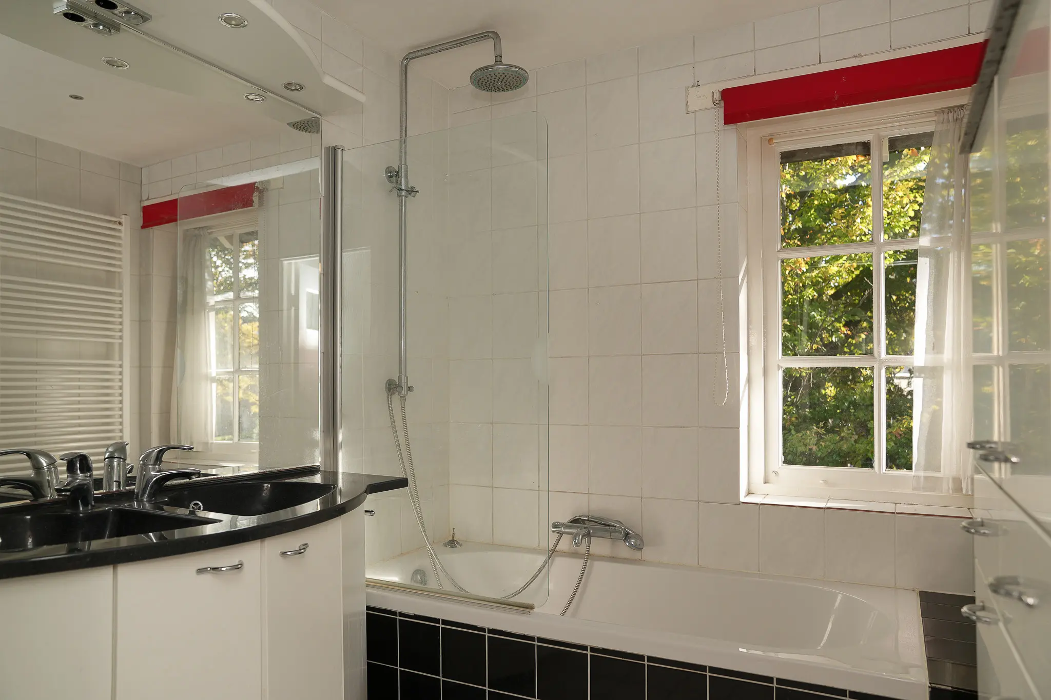 De tweede verdieping biedt nog een extra kamer en een tweede badkamer met inloopdouche, wastafel en toilet. Een perfecte verdieping voor gasten, een thuiskantoor of een tienerkamer met eigen voorzieningen.