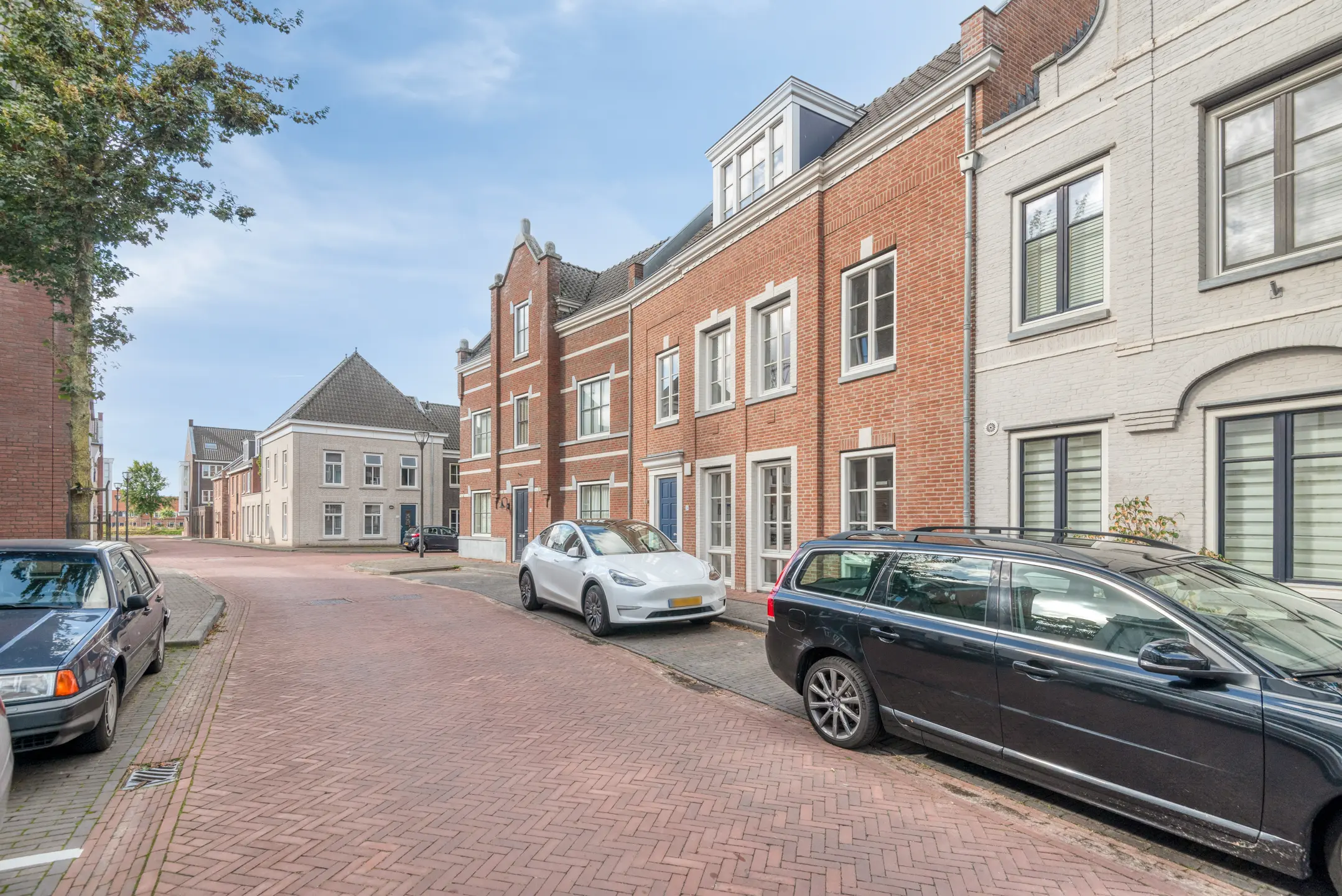 De achtertuin is onderhoudsvriendelijk aangelegd met een combinatie van bestrating en groen. Achter in de tuin bevindt zich een berging met elektra. Er is een eigen achterom, wat zorgt voor extra gemak. Op het afgesloten terrein achter de woning bevindt zich een eigen parkeerplaats.
