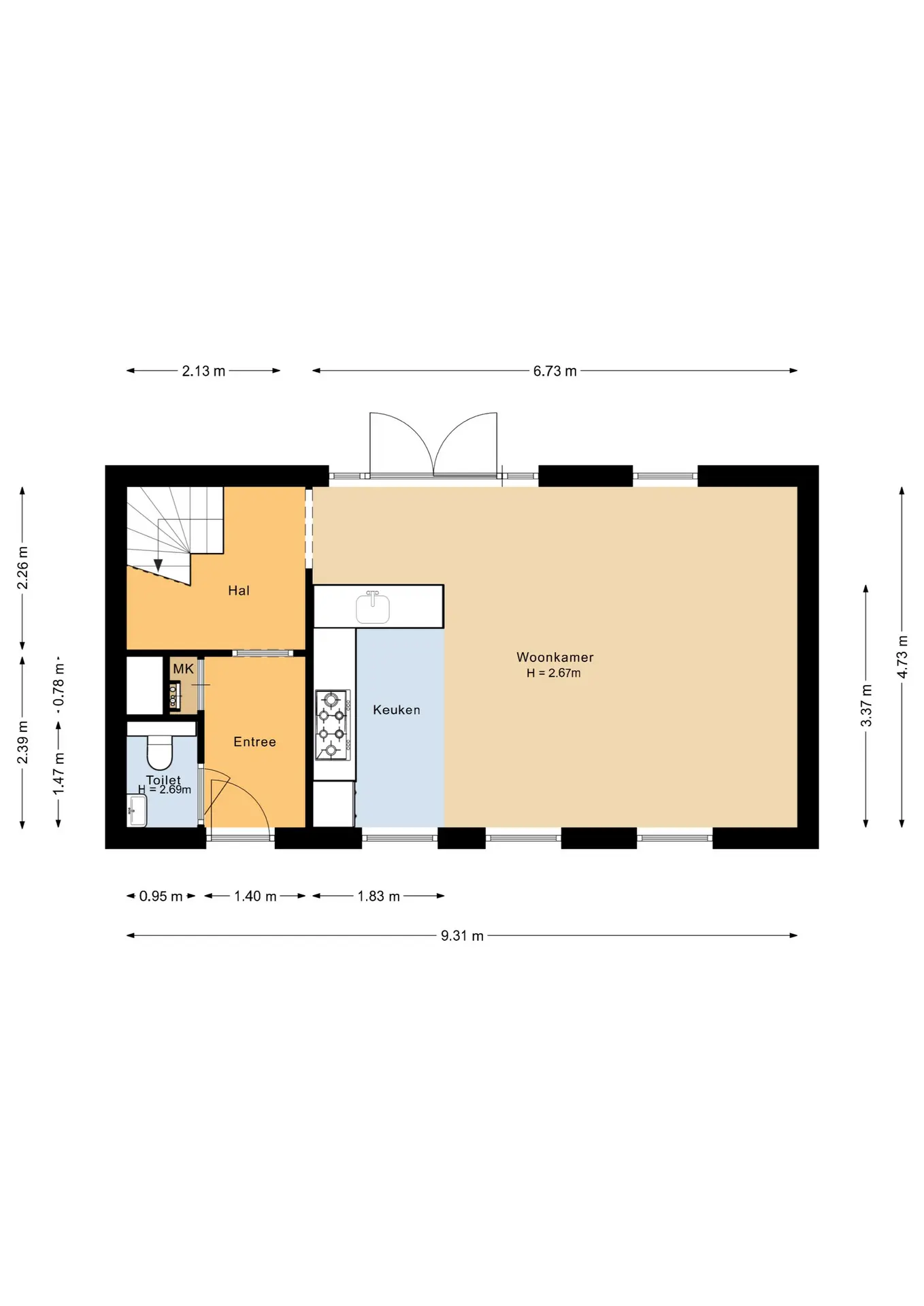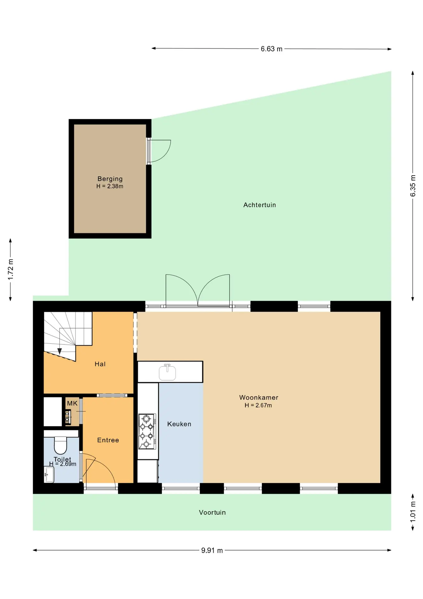 Bij binnenkomst treft u een hal met meterkast, een modern toilet en trapopgang . Vanuit de hal komt u in de royale woonkamer. Deze is tuingericht en voorzien van vloerverwarming wat zorgt voor extra wooncomfort. De grote raampartijen zorgen voor veel lichtinval.