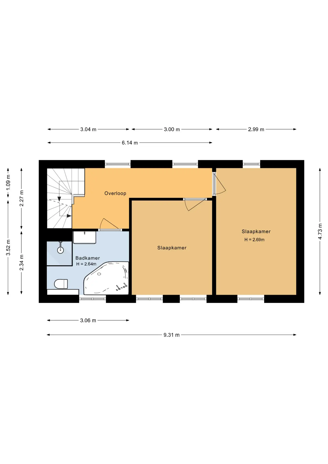 Via de trap komt u op de eerste verdieping hier bevinden zich twee slaapkamers. De slaapkamers hebben veel lichtinval door de grote raampartijen en bieden voldoende ruimte voor slapen, werken of studeren.