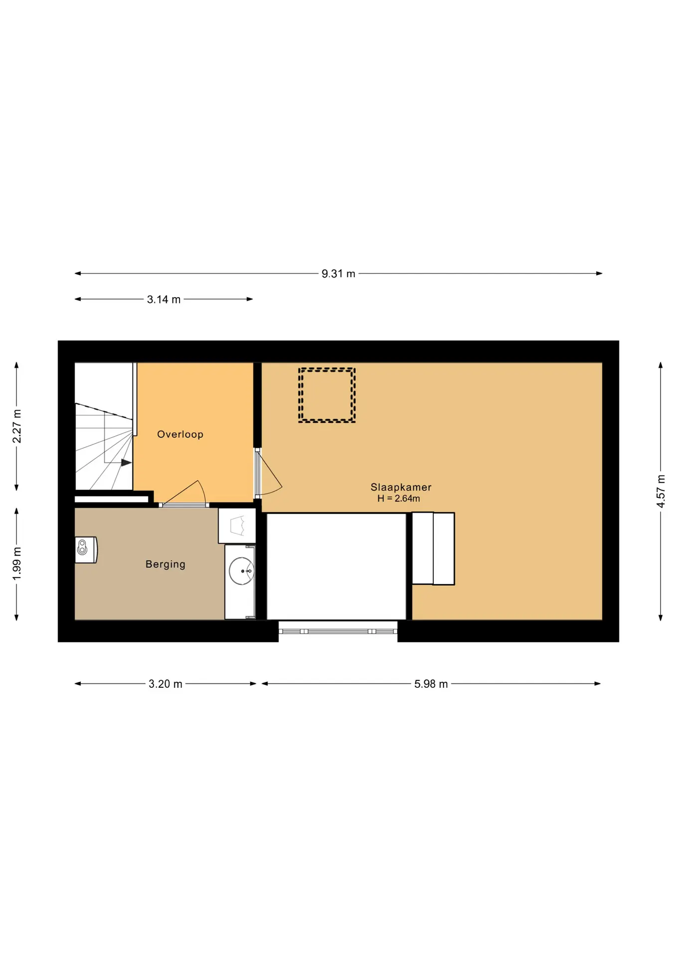 De zolder is verrassend ruim en biedt plaats voor nog een extra slaapkamer of hobbyruimte. Ook bevindt zich hier een extra berging met aansluiting voor de wasmachine. Dankzij het bouwjaar is deze verdieping goed geïsoleerd en multifunctioneel te gebruiken.