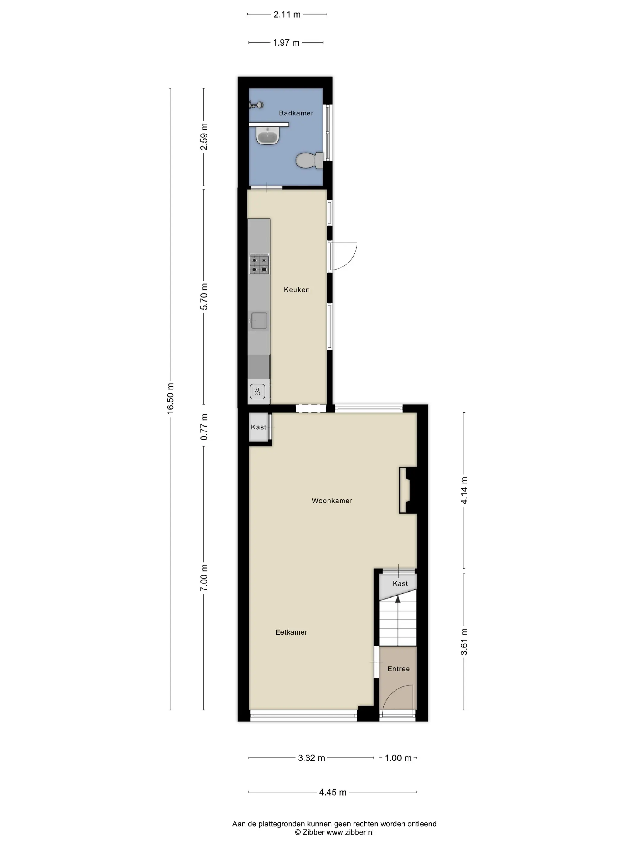Via de voordeur kom je binnen in een nette hal met , trapopgang naar boven, toegang tot de woonkamer, keuken en de badkamer.