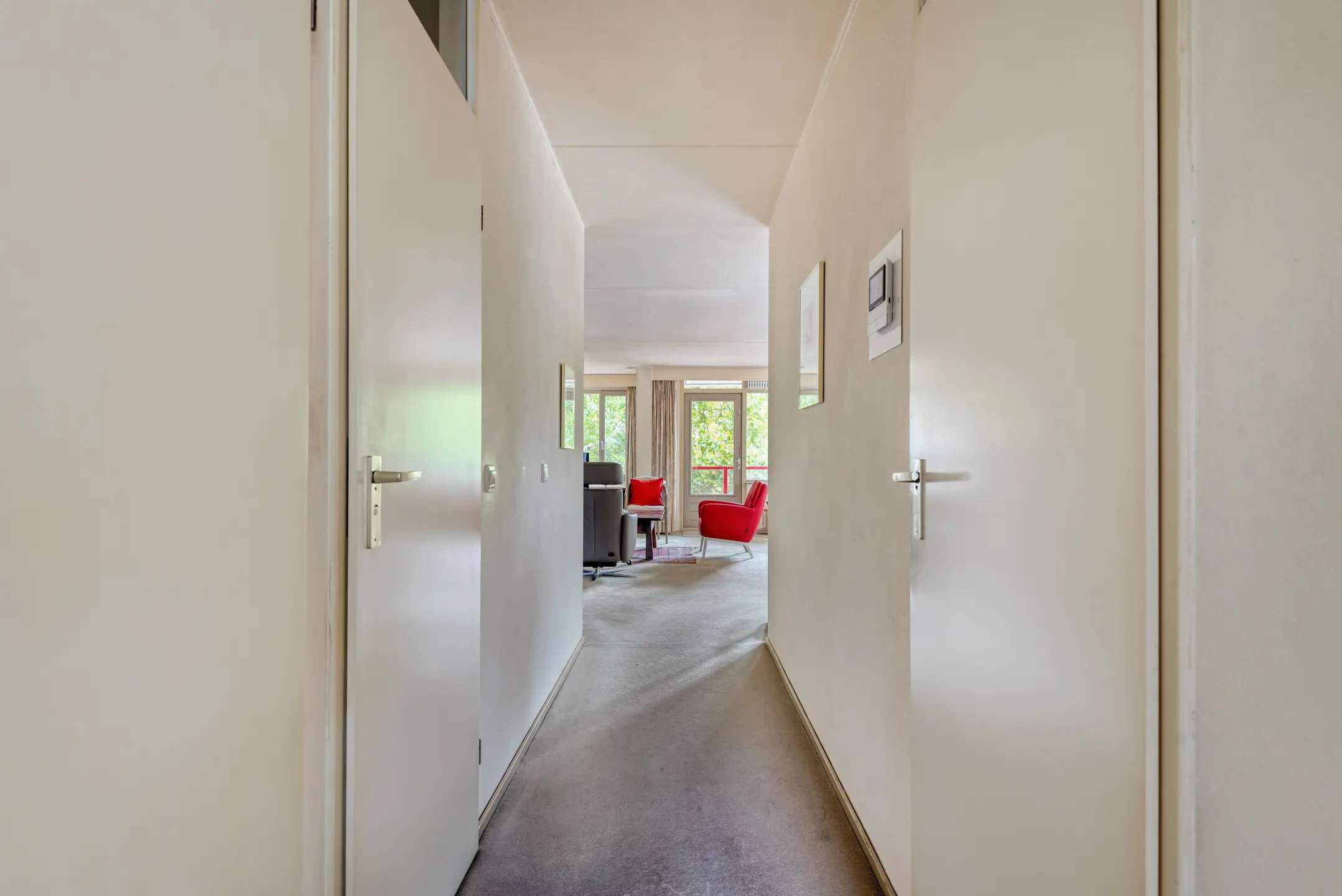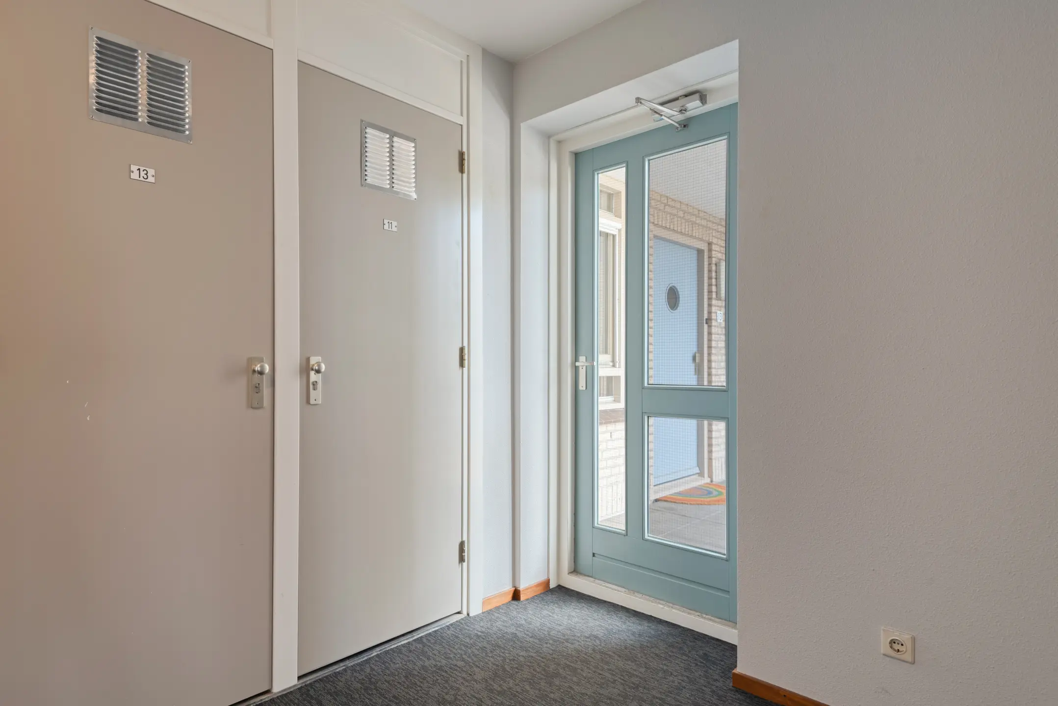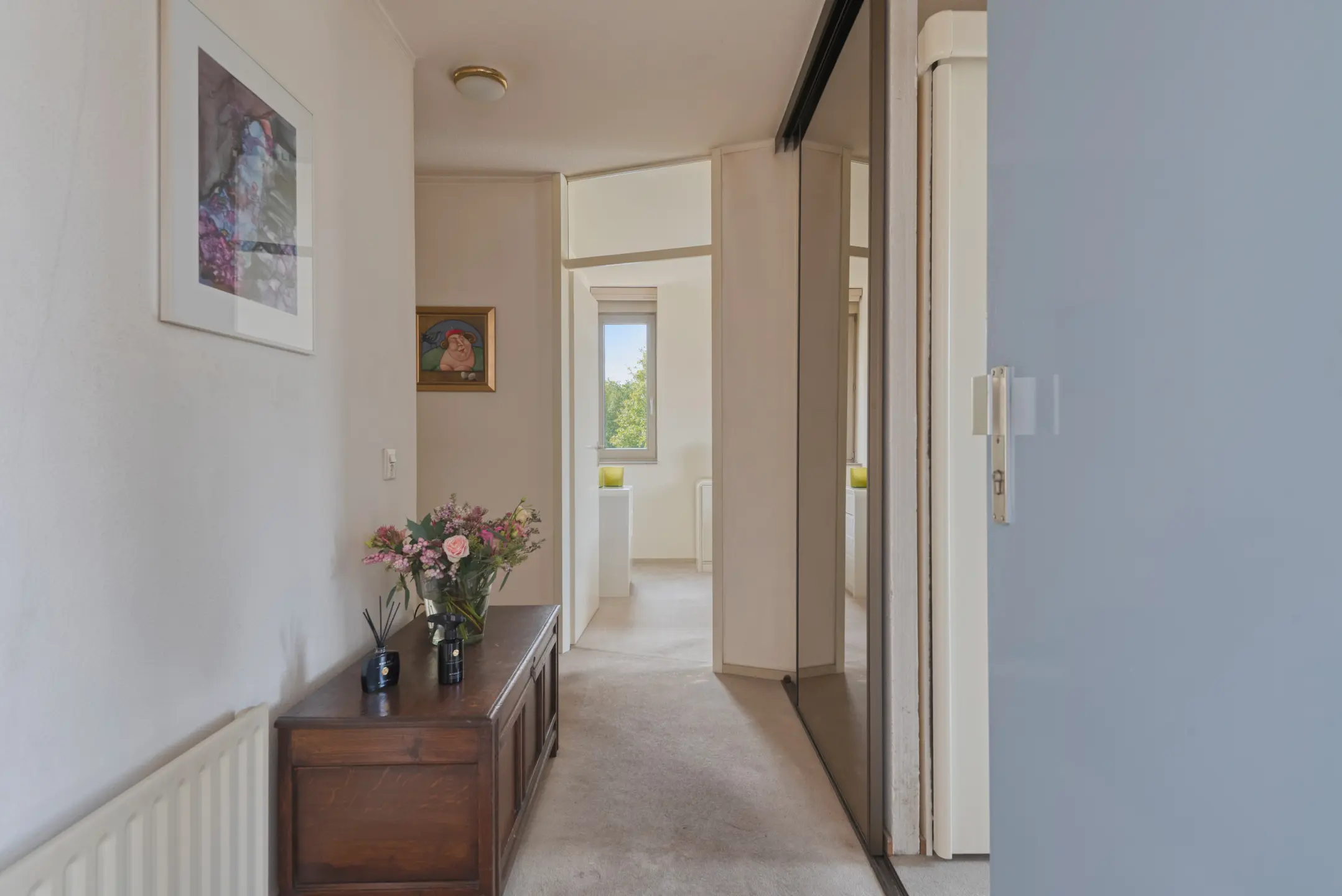 Via de gezamenlijke entree komt u in de centrale hal met brievenbussen. Het appartement zelf heeft een ruime hal die toegang geeft tot de slaapkamers, badkamer, toilet en de woonkamer.
