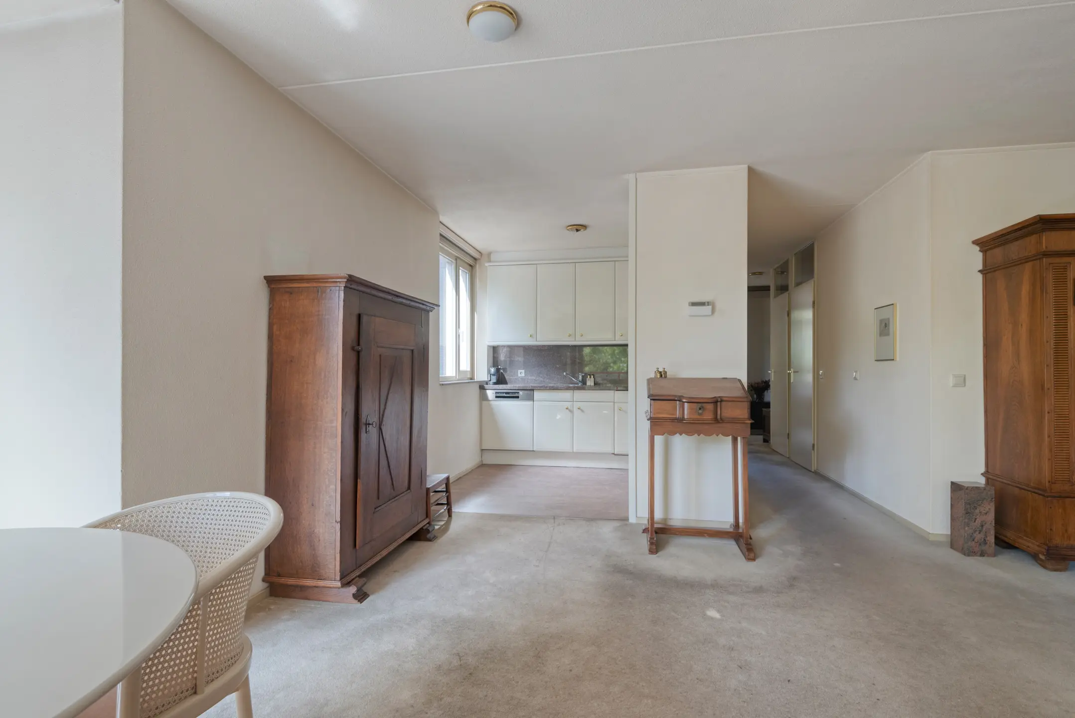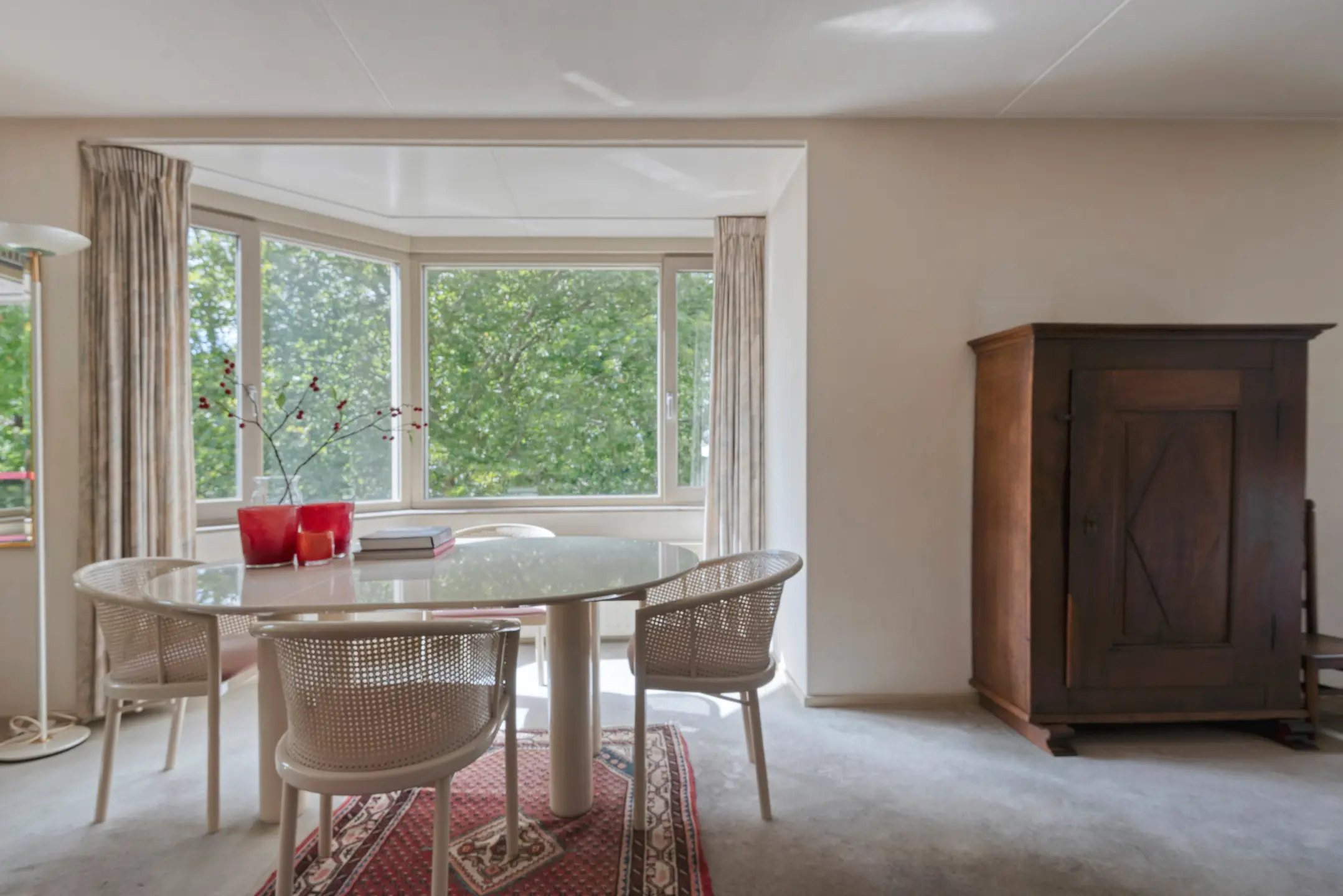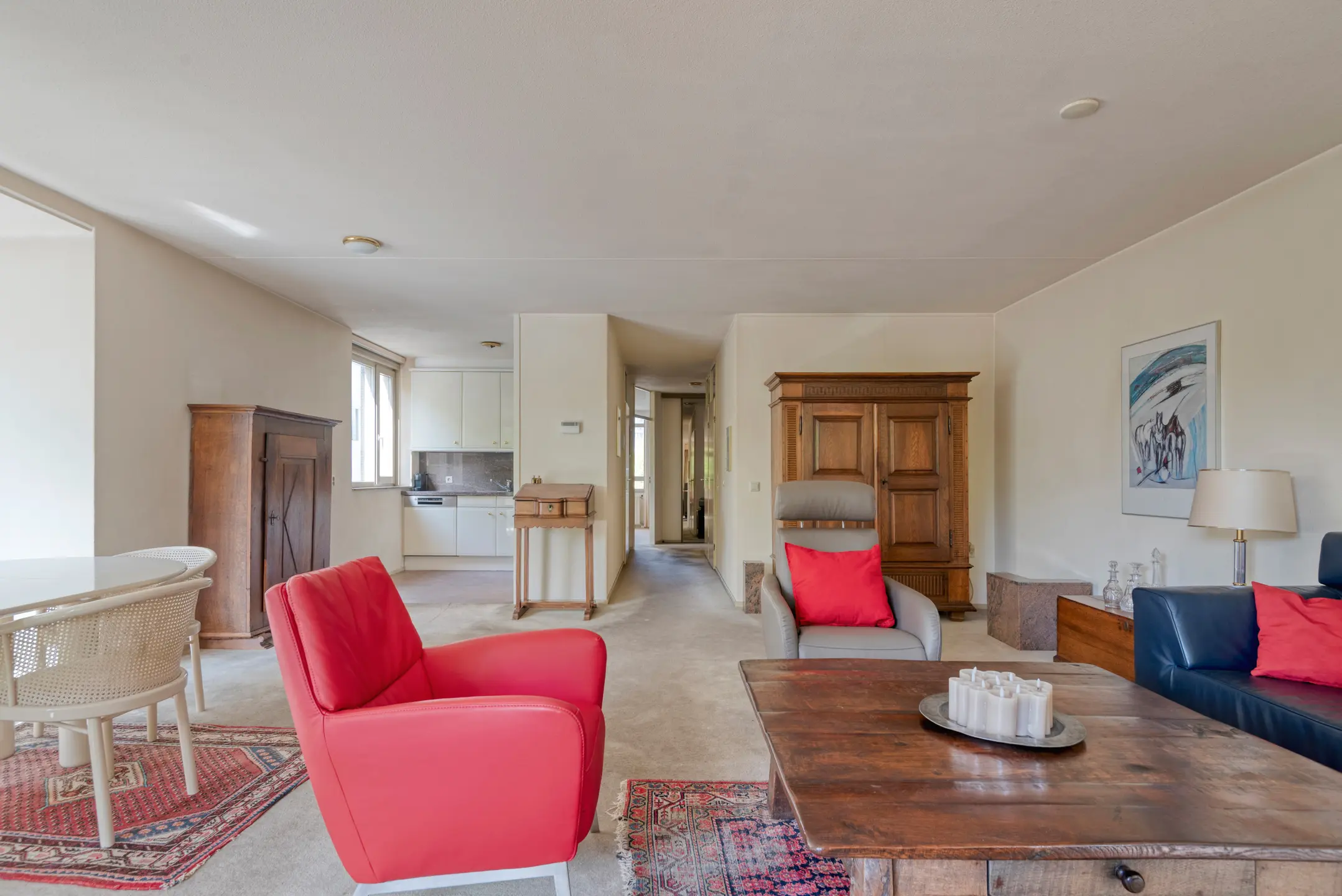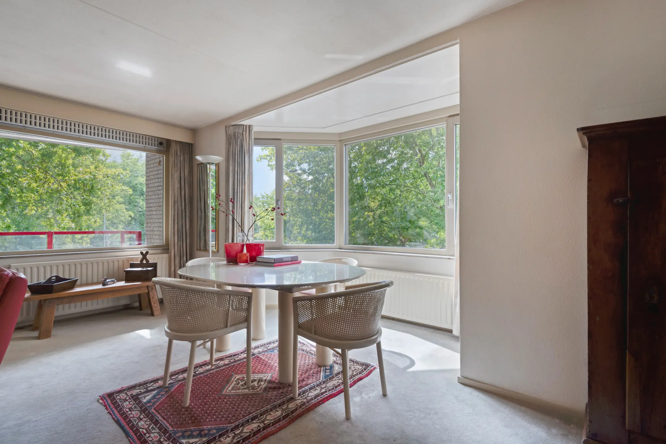 De royale woonkamer biedt veel lichtinval door de grote raampartijen voorzien van HR+ glas en geeft direct toegang tot het balkon. Hier heeft u alle ruimte voor zowel een zit- als eetgedeelte.