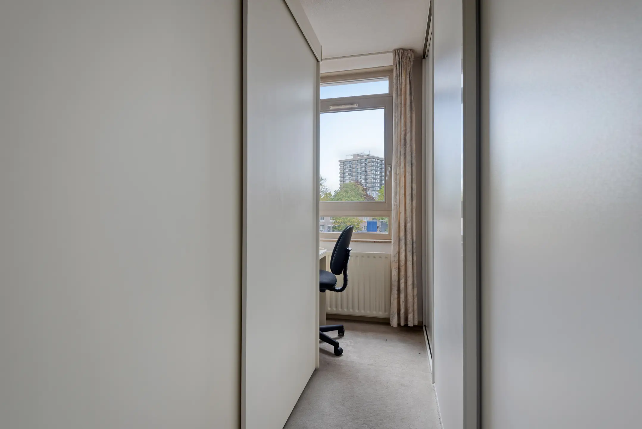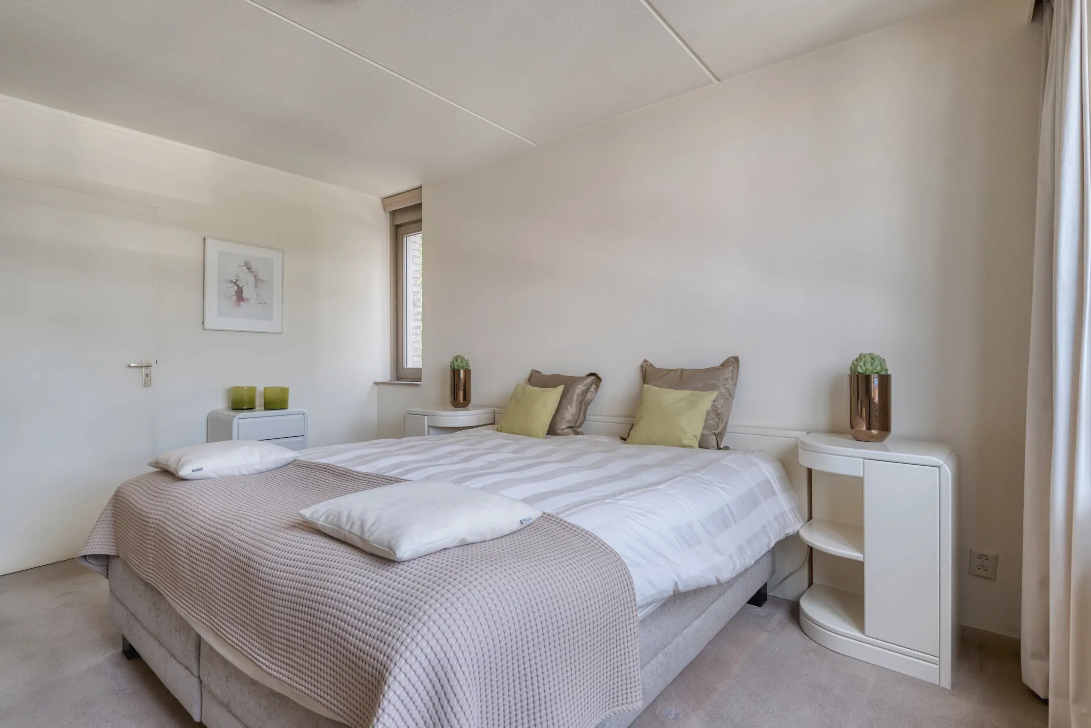 Het appartement beschikt over twee slaapkamers. Waarvan een master bedroom met veel lichtinval. De tweede slaapkamer kan dienen als logeerkamer of als werkkamer.