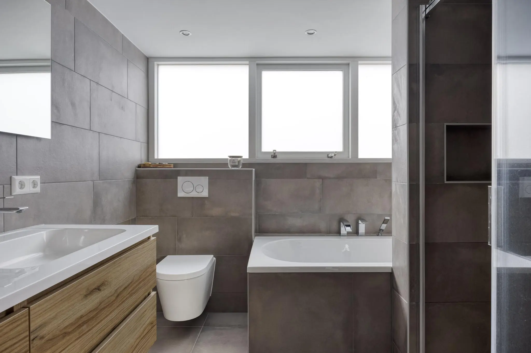 • Moderne badkamer (2022) – met ruime regendouche, bubbelbad en verwarmde spiegel