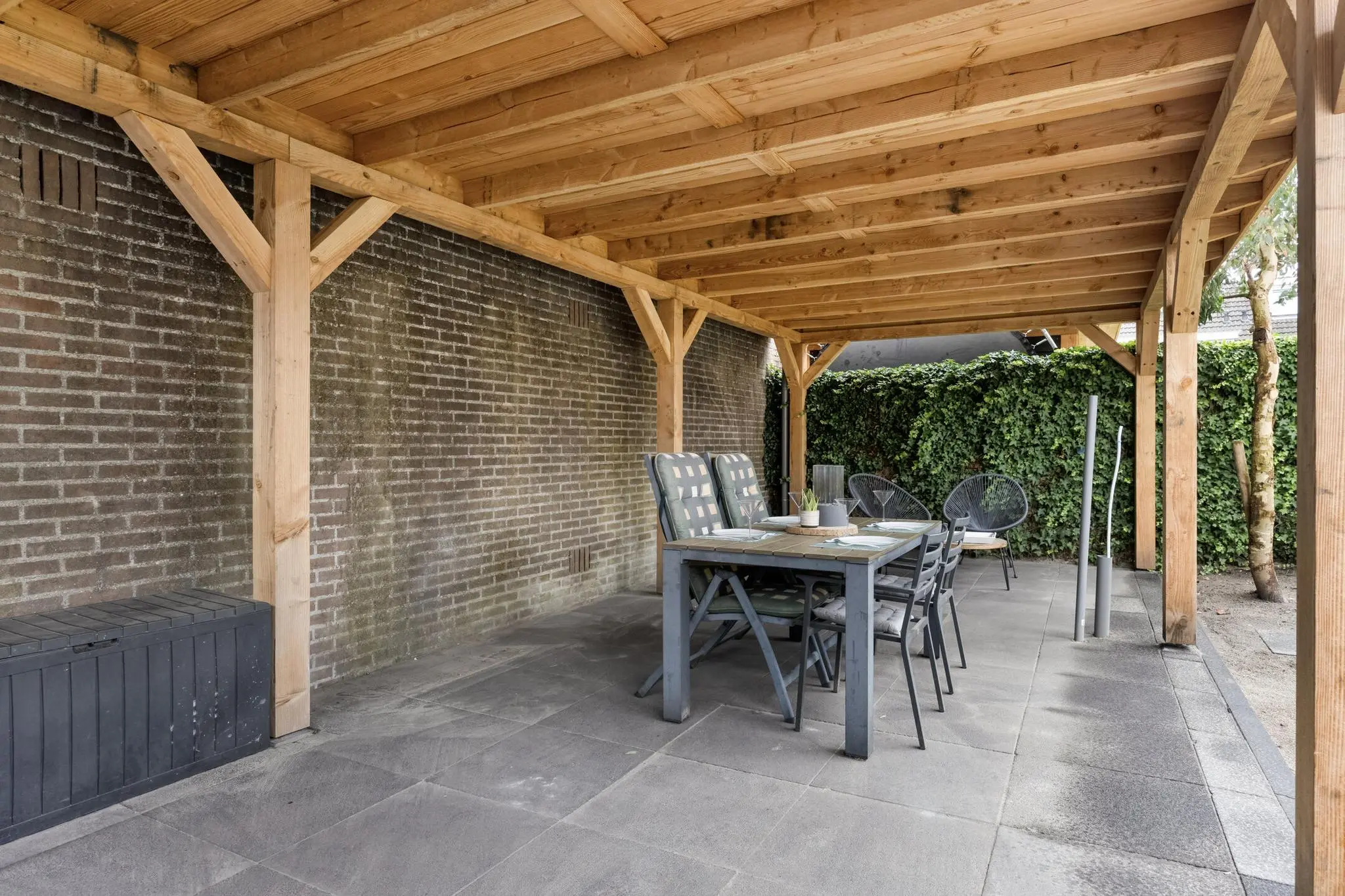 • Grote overkapping van 4 x 10 meter – lekker buiten zitten, ook als het regent