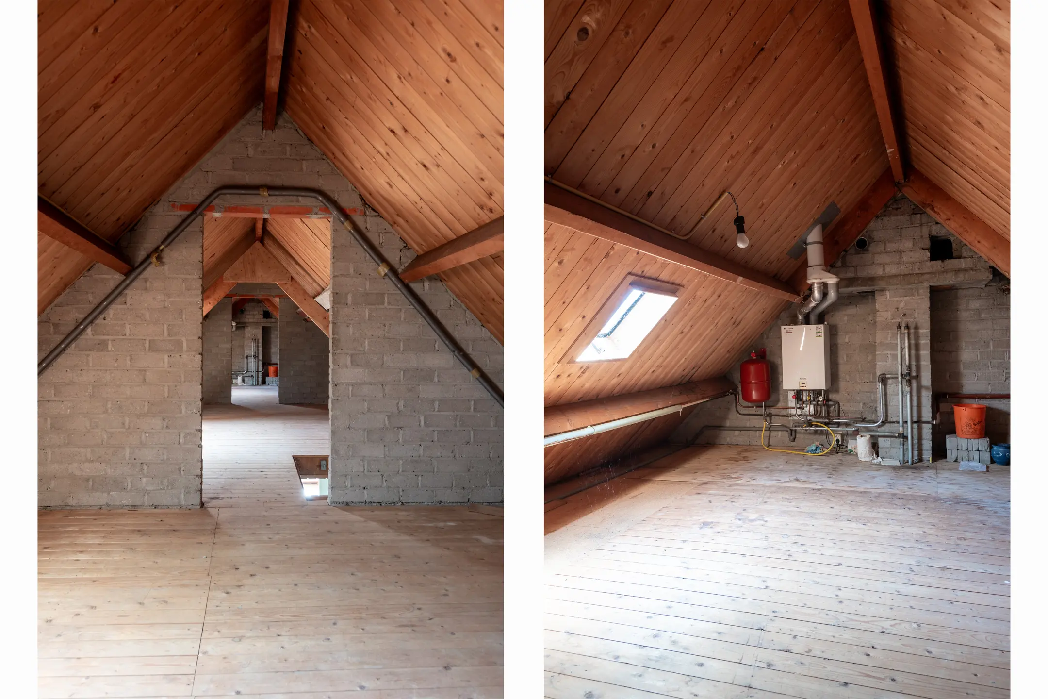 Via een vlizo trap bereik je de enorme zolderverdieping die zich uitstrekt over de volledige woning. Deze verdieping biedt volop potentie: creëer hier een vijfde (of zelfs zesde) slaapkamer, een werkruimte, fitnessruimte of een extra luxe master suite. Dankzij het schuine dak en de royale nokhoogte is dit echt een bonusverdieping die jouw woonwensen flexibel ondersteunt.