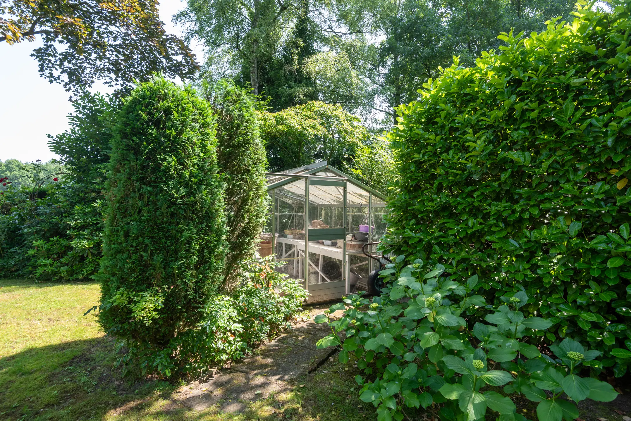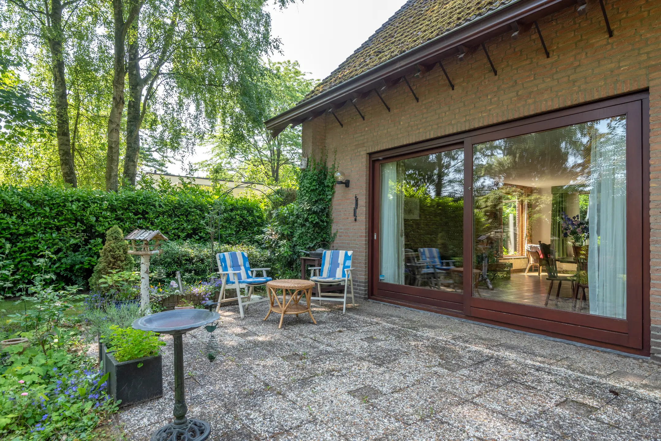 Het perceel van 992 m² biedt een tuin rondom de woning, met een fraai aangelegde voortuin, een zijtuin met oprit en een riante, volledig privacy biedende achtertuin. De achtertuin is bijzonder diep en grenst direct aan het buitengebied – een adembenemend uitzicht dat nooit verveelt. Hier kun je in alle rust genieten van zon, schaduw, vogels, en ruimte. Dankzij het grote perceeloppervlak zijn er talloze mogelijkheden om de tuin verder naar eigen wens in te richten: denk aan een zwembad, veranda, tuinkantoor of een moestuin.