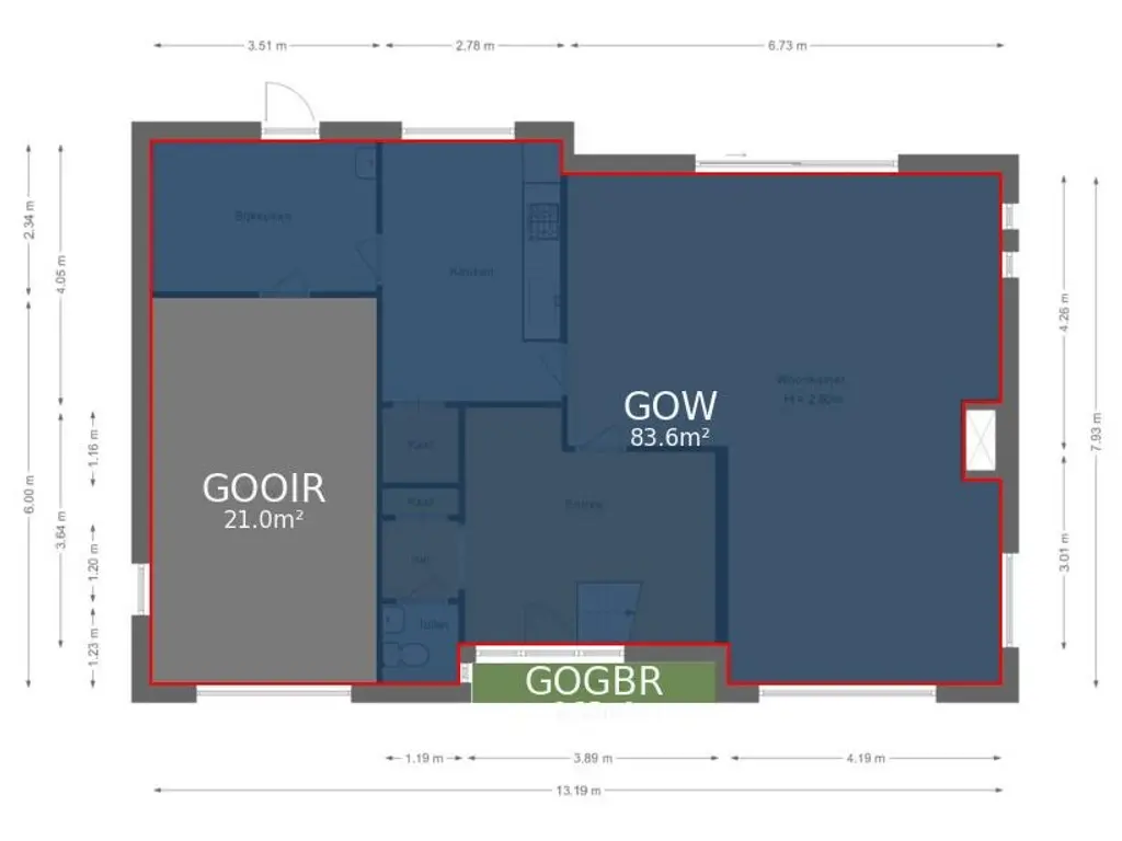 Overige inpandige ruimte (garage, bijkeuken): ca. 48 m²
