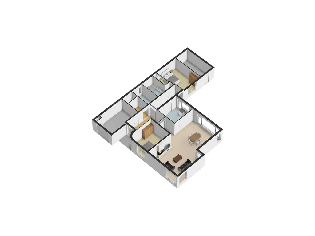 Vanuit de gang zijn de wasruimte, de badkamer, de tweede slaapkamer en tevens de keuken bereikbaar.